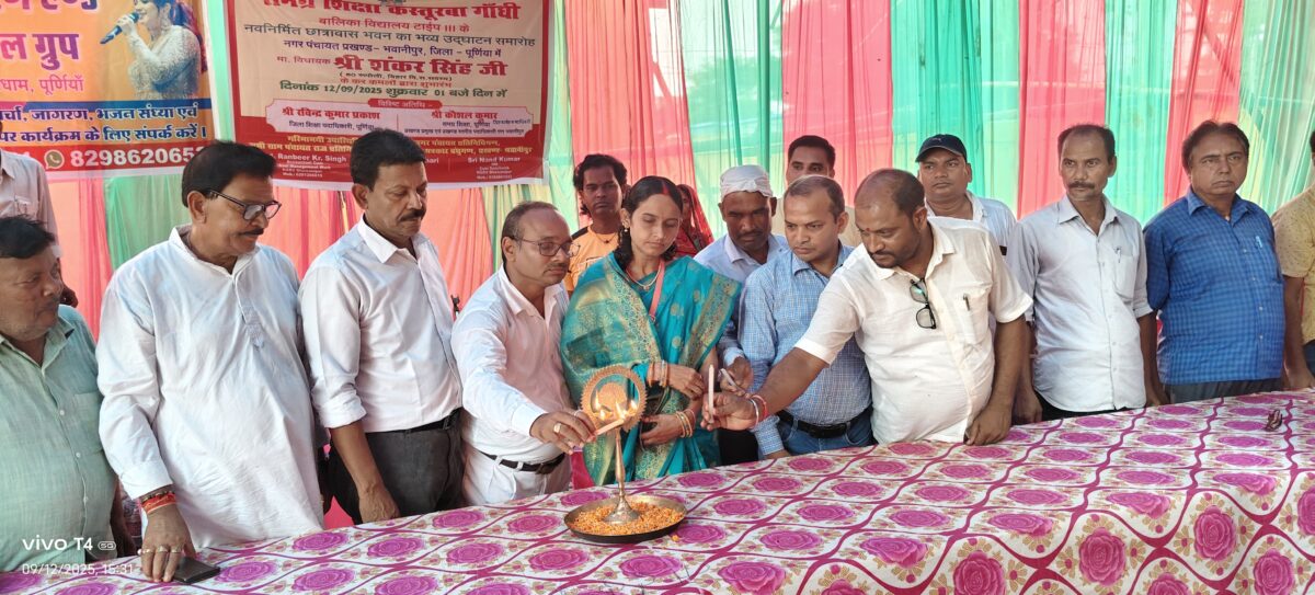 भवानीपुर. भवानीपुर प्रखंड मुख्यालय स्थित बलदेव उच्च विद्यालय परिसर में बने समग्र शिक्षा कस्तूरबा गांधी नवनिर्मित छात्रावास भवन का उद्घाटन शुक्रवार को रूपौली विधायक शंकर सिंह की धर्मपत्नी व जिला पार्षद प्रतिमा सिंह , सहायक कार्यक्रम पदाधिकारी अरविंद कुमार, लेखपाल सर्व शिक्षा परियोजना प्रमोद कुमार ने संयुक्त रूप से फीता काटकर किया . मंच संचालन मध्य विद्यालय सिंघियन सुंदर के सहायक शिक्षक प्रदीप कुमार एवं आयोजन की व्यवस्था कस्तूरबा गांधी आवासीय विद्यालय के लेखापाल रणविजय कुमार वार्डन उषा कुमारी ने की. मौके पर जिला पार्षद प्रतिमा सिंह ने कहा कि सरकार की इस योजना से अंतिम पंक्ति के बच्चों को शिक्षा ग्रहण करने का अवसर है.शिक्षित होने पर ही आप कोई मुकाम हासिल कर सकते हैं. उन्होंने लोगों से अपील की कि सभी लोग अपने-अपने बच्चों का नामांकन करना सुनिश्चित करें . सहायक कार्यक्रम पदाधिकारी श्री झा ने कहा कि बिहार का पहला जिला है जहां मूक बधिर दिव्यांग 25 बच्चों को शिक्षित किया जा रहा है .इन बच्चों को साइन लैंग्वेज के माध्यम से प्रशिक्षित किया जाता है. उन्होंने कहा 9 से 12 वर्ग मैं 100 छात्राओं को छात्रावास में रखा जाता है जिन्हें बगल के प्रोजेक्ट विद्यालय में शिक्षण दिया जाता है. इन बच्चों को मुख्य रूप से शिक्षित करने का काम शिक्षक परेश कुमार भारती करते हैं. सर्व शिक्षा परियोजना के बढ़िया लेखपाल प्रमोद कुमार ने कहा कि बच्चों का शिक्षित होना अति आवश्यक है इसलिए बच्चों को समय से विद्यालय भेजें.