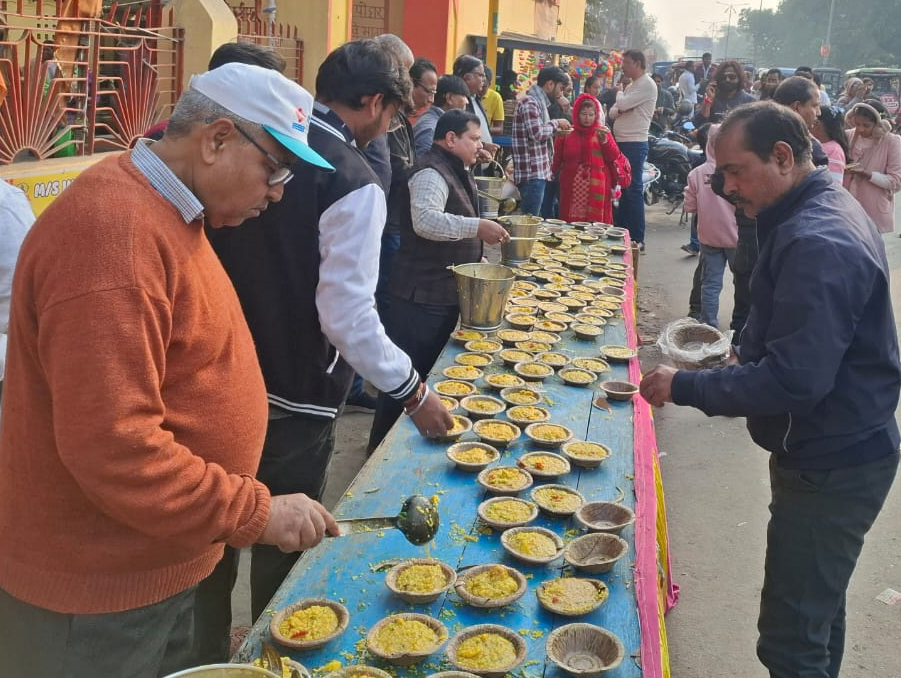 पूर्णिया. स्थानीय आरएनसाह चौक स्थित श्रीराम जानकी महावीर मंदिर समिति के सदस्यों ने समिति की ओर से मकरसंक्रांति पर्व के अवसर पर खिचड़ी महाप्रसाद का वितरण किया. इस दौरान बड़ी संख्या में श्रद्धालुओं एवं राहगीरों ने श्रीराम जानकी महावीर मंदिर प्रांगण में महाप्रसाद ग्रहण किया. मिडिया प्रभारी एवं अधिवक्ता पवन कुमार पोद्दार ने बताया कि हर वर्ष की भांति इस वर्ष भी मकरसंक्रांति के अवसर पर समिति सदस्यों ने खिचड़ी महाप्रसाद का आयोजन किया. जिसमें हजारों श्रद्धालुओं एवं राहगीरों ने श्रद्धा पूर्वक महाप्रसाद ग्रहण कर मंदिर समिति के सेवा कार्यों की प्रशंसा की. उन्होंने बताया कि मंदिर समिति के अध्यक्ष आदित्य केजरीवाल, सचिव आदित्य कुमार सहित समिति के सभी ऊर्जावान सदस्य मंगलवार से ही इस आयोजन को सफल बनाने की तैयारी में लगे हुए थे. इस मौके पर तिवारी बाबा ने भी स्वयं उपस्थित होकर प्रसाद वितरण को संपन्न कराया. वहीं राणा प्रताप सिंह माइक से श्रद्धालुओं को कतारबद्ध होकर महाप्रसाद ग्रहण करने का आग्रह कर रहे थे. प्रसाद बनवाने से लेकर वितरण तक समिति सदस्य मुस्तैद रहे. लोगों ने अपराह्न 2 बजे से संध्या 5 बजे तक निर्वाध रुप से महाप्रसाद ग्रहण किया. इस महाप्रसाद आयोजन को सफल बनाने में समिति सदस्य तिवारी बाबा, आदित्य केजरीवाल, आदित्य कुमार कर्ण, इन्द्रजीत प्रसाद साह उर्फ बरकु, प्रदीप शारदा, दिलिप तिवारी, डॉ आलोक कुमार, डॉ अंगद चौधरी, अनिल लोहिया, प्रमोद पंसारी, राणा प्रताप सिंह, पवन कुमार पोद्दार, निर्णय जैन, एसके सरोज, उज्जवल गुप्ता, सुबोध कुमार, नन्द किशोर सिंह, मुरारी सिंह, प्रमोद पंसारी, अभिनव विश्वास, जानसन, मिथलेश, एनके गुप्ता, प्रमोद शारदा, प्रवीण शारदा, राजकुमार पंसारी, संजय गर्ग, सुरज, सुनील लोहिया सहित मंदिर के अर्चक पुरोहित एवं आसपास के श्रद्धालुओं ने महत्वपूर्ण भूमिका निभायी.