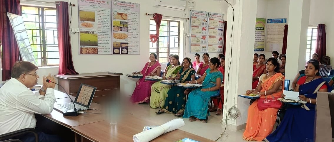 जलालगढ़. कृषि विज्ञान केन्द्र जलालगढ पूर्णिया परिसर में चल रहे पांच दिवसीय कृषि सखियों के लिए प्रशिक्षण कार्यक्रम के दूसरे दिन कृषि सखियों के साथ प्राकृतिक खेती से जुड़े मुख्य विषयों को साझा किया गया. मंगलवार को पहले सत्र में कृषि वैज्ञानिक डॉ एस पी विश्वकर्मा ने किसान महिलाओं को संबोधित किया. उनका मुख्य विषय मृदा स्वास्थ्य से जुड़ा था. उन्होंने किसानों को बताया कि प्राकृतिक खेती करके किसान अपने मृदा की संरचना को सुधार सकते हैं. इससे आगामी फसल को लाभ मिलेगा. इसके साथ ही पूरे साल फसल चक्र अपनाकर अपने खेत को मजबूत कर सकते हैं. वहीं दूसरे सत्र के दौरान केंद्र के वरीय वैज्ञानिक सह प्रधान डॉ के एम सिंह ने किसान महिलाओं को बहुफसली खेती के बारे में अवगत कराया. साथ ही उन्हें धीरे-धीरे पारंपरिक खेती से प्राकृतिक खेती की तरफ बढ़ने का तरीका समझाय जिससे किसान कम लागत में अपनी आर्थिक स्थिति को भी सुधार सकता है. मौके पर केंद्र के अन्य कृषि वैज्ञानिक सहित पूर्णिया जिला के चयनित 24 कृषि सखियां मौजूद थीं.