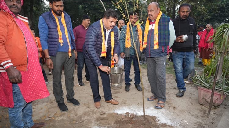 पूर्णिया. जिला मुख्यालय से करीब आठ किलोमीटर दूर स्थित मंदिरों की नगरी पूर्णिया सिटी स्थित बाबा जगन्नाथ परिसर में नवनिर्मित मंदिर में मंत्रोच्चार के साथ पूजन अनुष्ठान कर प्राण प्रतिष्ठा की गई. इस अवसर पर शिवचर्चा का भी भव्य आयोजन कराया गया. प्राण प्रतिष्ठा के मौके पर बड़ी संख्या में धर्मानुरागी शामिल हुए. मंदिर निर्माण में सक्रिय भूमिका निभा रहे पूर्णिया सिटी के युवा समाजसेवी राकेश कुमार राय उनकी पत्नी पूजा में बैठे और श्रद्धा के साथ प्राण प्रतिष्ठा किया. पूजन-अनुष्ठान के बाद भंडारा का आयोजन किया गया जिसमें बड़ी संख्या में भक्तों ने प्रसाद ग्रहण किया. इस अवसर पर पूर्णिया के पूर्व सांसद संतोष कुशवाह भी पहुंचे और मंदिर के आसपास काठमांडू से मंगाये गये रुद्राक्ष के पेड़ लगाए गये. कई पेड़ महेश लाहोटी ने भी लगाए. इस अवसर पर हजारों की संख्या में श्रद्धालुओं ने पूजा अर्चना किया. फोटो- 13 पूर्णिया 4- पेड़ लगाते पूर्व सांसद संतोष कुशवाहा एवं अन्य.