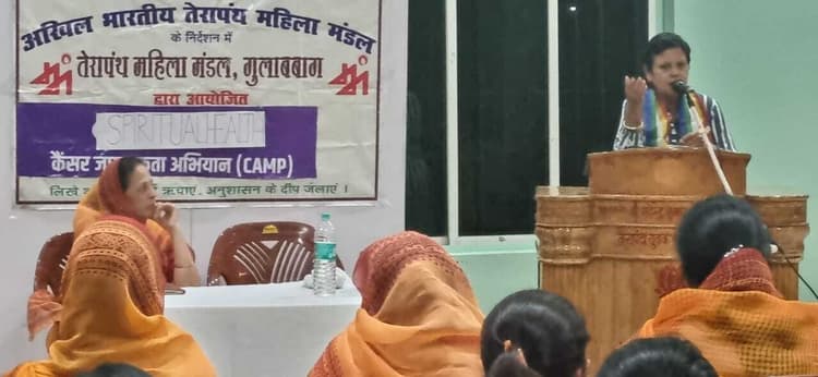 पूर्णिया. अखिल भारतीय तेरापंथ महिला मंडल के तत्वावधान में तेरापंथ महिला मंडल गुलाबबाग द्वारा कैंसर जागरुकता अभियान के अंतर्गत कार्यशाला का आयोजन किया गया. तेरापंथ भवन में आयोजित इस कार्यशाला कैंसर से बचाव के लिए दैनिक जीवन में बरती जाने वाली सतर्कता पर फोकस किया गया. कार्यक्रम की शुरुआत नमस्कार महामंत्र द्वारा की गई. महिला मंडल की बहनो द्वारा प्रेरणा गीत का संगान किया गया. इस मौके पर महिला मंडल की अध्यक्ष शांता संचेती ने अतिथियों का स्वागत किया. कार्यशाला के दौरान योग प्रशिक्षिका व समाज सेविका स्वाति वैश्यंत्री ने योग द्वारा कैंसर से बचने के कई उपाय बताए. उन्होंने बताया कि हमें हमारे खानपान में सुधार लाना है. जैसे, पैकेट फूडस नही खाना है, हेल्दी खाना लेना चाहिये. उन्होंने हर रोज एक घंटा अपने आप को समय देने के लिए प्रेरित किया और कम से कम एक घंटा योग प्राणायाम करने के बारे में समझाया. उन्होंने महिला मंडल को योग करने का आह्वान किया. स्वाति वैश्यंत्री ने भोजन के न्यूट्रिशन के बारे में बताया जिससे हम कैंसर जैसी जानलेवा बीमारी से बच सकते हैं. उपासिका बबिता गिरिया कार्यक्रम का संचालन कर रही थी जबकि मंत्री रेखा डागा ने आभार व्यक्त किया. फोटो- 31 पूर्णिया 3- कार्यशाला में उपस्थित अतिथि एवं अन्य.