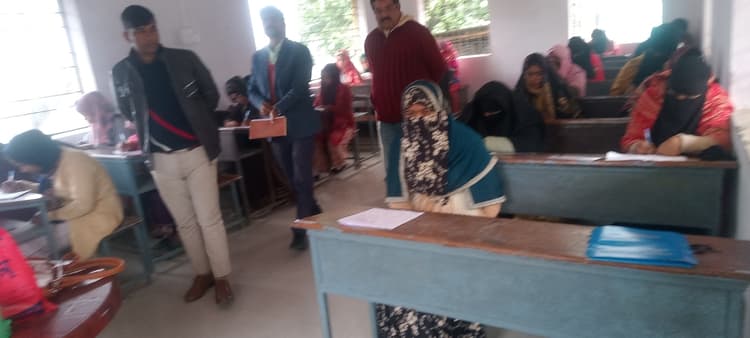 अमौर. अमौर प्रखंड के तीन परीक्षा केंद्रों में मौलवी परीक्षा शांतिपूर्ण माहौल में चल रही है. इसमें मदरसा आशाअतुल उलूम अमौर, 2 प्रोजेक्ट बालिका उच्च विद्यालय अमौर एवं आदर्श मध्य विद्यालय अमौर में परीक्षा केन्द्र बनाया गया है. सोमवार को पहले दिन की परीक्षा के दौरान अमौर बीडीओ रंजीत कुमार सिंह के अलावा उड़नदस्ता टीम के अधिकारियों ने परीक्षा केंद्रों की जांच पड़ताल की. मदरसा आशाअतुल उलूम अमौर के केन्द्राधिक्षक मो उब्बाद आजम ने बताया कि इस केंद्र में कुल 229 परीक्षार्थियों में से 220 परीक्षार्थी परीक्षा में भाग लिया. जबकि नौ परीक्षार्थी अनुपस्थित रहे हैं. 2 प्रोजेक्ट बालिका उच्च विद्यालय अमौर के केन्द्राधिक्षक तरन्नुम आफरीन ने बताया कि इस केंद्र में कुल 248 परीक्षार्थियों में से 242 परीक्षार्थी परीक्षा में भाग लिया. जबकि छह परीक्षार्थी अनुपस्थित रहे है. इसी प्रकार आदर्श मध्य विद्यालय अमौर के केन्द्राधीक्षक मो एहसान ने बताया कि इस केन्द्र में कुल 291 परीक्षार्थियों में से 285 परीक्षार्थी परीक्षा में भाग लिये हैं, जबकि छह परीक्षार्थी अनुपस्थित रहे हैं.