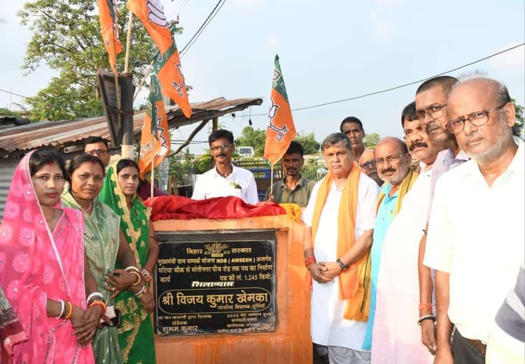 पूर्णिया. पूर्णिया विधानसभा अंतर्गत ईस्ट ब्लॉक में सोमवार को विधायक विजय खेमका ने विभिन्न विकास योजनाओं का शिलान्यास एवं उद्घाटन किया. उन्होंने विधायक निधि से रानीपतरा सर्वोदय गांधी पुस्तकालय के जीर्णोद्धार कार्य का उद्घाटन किया तथा धनगामा कोहवार स्थान पर शौचालय, बाथरूम और बरबन्ना में आंगनबाड़ी से चौहान तक सड़क निर्माण कार्य का शिलान्यास किया. राजीगंज पंचायत में मटिया–मोतीनगर एवं गौरा पंचायत में कदवा-डांगी सड़क के निर्माण कार्य का शिलान्यास विधायक ने किया. दीवानगंज पंचायत में बिलरिया से बरबन्ना तक सड़क का उद्घाटन भी विधायक ने किया. विधायक ने कहा ईस्ट ब्लॉक के विभिन्न पंचायत में 14 नयी सड़कों का पक्कीकरण शीघ्र प्रारंभ होगा तथा ग्रामीण कार्य विभाग से उन्नयन योजना के तहत 40 सड़कों का जीर्णोद्धार कार्य अगले सप्ताह से शुरू होगा. उन्होंने बताया गांवों में अब शहर जैसी सुविधाए पंचायत भवन, खेल का मैदान, हेल्थ सेंटर, नल-जल, वार्ड में एलईडी लाइट, हर घर बिजली, स्कूल में भवन उपलब्ध हो रहे हैं. कार्यक्रम स्थल पर मनोज गोस्वामी, पानो देवी, मंगल पोद्दार, बिरेन्द्र सिंह, नूतन देवी, दशरथ चौहान, बादल यादव, विनोद मेहता, जिला पार्षद राजीव सिंह आदि मौजूद थे.