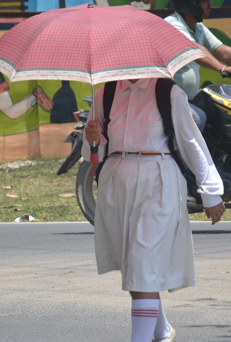 पूर्णिया. मौसम के बदलते मिजाज के कारण एक बार फिर से गर्मी ने डेरा डाल दिया है. विलंब से आया मानसून फिर कमजोर पड़ गया है जिससे बारिश रुक गई और गर्मी और उमस ने एक बार फिर से लोगों को परेशान कर दिया है.यह विडम्बना है कि आषाढ़ माह में जेठ जैसी गर्मी पड़ रही है. इस गर्मी ने लोगों को व्याकुल कर दिया है. तेज धूप व भारी उमस से शरीर पसीना से तरबतर होने लगा है. मौसम में भी कोई बदलाव नहीं आ रहा है. मौसम विशेषज्ञों की मानें तो अगले 48 घंटे के बाद मौसम के पलटी मारने की संभावना है. इस दौरान बारिश का पूर्वानुमान बताया गया है. मौसम विशेषज्ञों के अनुसार आगामी 20 जुलाई को बारिश को रफ्तार मिल सकती है. गौरतलब है कि इस बार मानसून देर से आया और आने के बाद ही मानसून पूर्व गतिविधियां शुरू हुईं. आलम यह रहा कि वर्षा की आमद से शहर में कई जगह जलभराव की स्थिति भी हो गई थी, लेकिन अब मौसम ने रुख बदल लिया और बादल भी विदा हो गए . सूरज पूरे दिन ड्यूटी कर रहा है और आषाढ़ में अब धूप की वजह से सड़कों पर धूल उड़ रही है. आषाढ़ के इस माह में दिन निकलने के साथ ही आसमान से आग के गोले बरसने लगते हैं. जेठ की तरह सुबह से तेज धूप आसमान में खिलती है दोपहर एक बजे से ही चिलचिलाती धूप शुरू हो जाती है. ऐसे में बिजली की हालत भी बिगड़ने लगी है. बिजली नहीं रहने से जिधर देखिये उधर ही लोग बेचैनी का सामना करते दिखते हैं. दरअसल, मानसून के कमजोर पड़ने के कारण पिछले तीन दिनों से उमस भरी गर्मी लोगों को सता रही है. मानसून की रफ्तार धीमी होने से तापमान भी बढ़ रहा है और वातावरण में उमस बनी हुई है. मौसम विशेषज्ञों का कहना है कि अगले 48 घंटों के बाद निम्न दबाव का क्षेत्र बनने से मौजूदा मौसम प्रणाली में बदलाव हो सकता है. फोटो-18 पूर्णिया 10- तेज धूप से बचने का प्रयास करती छात्रा.