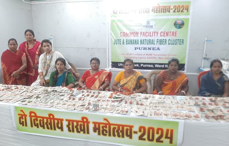 पूर्णिया. प्रकृति प्रदत्त संसाधनों की मदद से हस्त शिल्प द्वारा उसे कलात्मक रूप देकर अर्थोपार्जन करने का बेहतरीन मौक़ा पूर्णिया की महिला समूह ने इस राखी जैसे त्यौहार में अपने लिए तैयार किया. शिल्प एवं संस्कृति जन जन तक पहुंचाने का संकल्प लिए इस विद्या में महारत हासिल कर चुकी शहर की महिला कारीगर के अथक प्रयास और मेहनत से दो दिवसीय राखी महोत्सव का आयोजन संपन्न हुआ. आयोजन जिले के उफरैल में स्थित भारत सरकार के एमएसएमई मंत्रालय के अधीन स्फूर्ति परियोजना के तहत जूट एवम बनाना नेचुरल फाइबर क्लस्टर की महिला कारीगरों ने मिलकर किया था. जिसमें स्थानीय कलाकारों और कारीगरों ने जुट से बनी हस्तशिल्प की अद्भुत कलाकृतियां प्रदर्शित कीं. महोत्सव में पारंपरिक राखियों की विविधता देखने को मिली. इस अवसर पर स्थानीय महिला कारीगरों की सहभागिता और उत्साह को बढ़ावा मिला. इस साल के महोत्सव में कार्यक्रमों, जागरूकता सत्रों, और विविध गतिविधियों के माध्यम से प्लास्टिक और अन्य प्रदूषणकारी सामग्री के उपयोग को कम करने की दिशा में महत्वपूर्ण संदेश दिए गए. महोत्सव में भाग लेने वाले सभी लोगों ने पर्यावरण के प्रति अपनी जिम्मेदारी का अहसास किया और प्रदूषण रहित राखी प्रयोग में लाने का संकल्प लिया. इस महोत्सव में 5000 से ज्यादा राखियां बिकी कई संगठनों ने देश की सेवा में लगे सेना के जवानों को भेजने के लिए थोक में राखियां खरीदी तो वही दूसरी ओर पटना और दिल्ली की महिला संगठनों ने इस बार तीन हजार से ज्यादा राखियां यहां से खरीद कर भिजवाई. सबसे महत्वपूर्ण बात ये रही कि क्लस्टर की महिलाओं ने स्वयं घर घर जाकर दो सौ से ज्यादा राखियां बेची. साथ ही पूर्णिया क्राफ्ट को बढ़ावा देने की अपील भी की. दो दिवसीय इस महोत्सव में हजारों की संख्या में लोग शामिल हुए. सवेरा संस्था के अध्यक्ष विनोद आशीष ने बताया कि ऐसे महोत्सव के आयोजन ने न केवल सांस्कृतिक परंपराओं को जीवित रखा, बल्कि अर्थव्यवस्था और पर्यावरण संरक्षण का महत्वपूर्ण संदेश भी दिया. पूर्णिया आर्ट एवं क्राफ्ट को जन जन तक पहुंचाने के लिए दिन रात एक कर देने वाले कलाकार किशोर कुमार राय गुलू दा ने कहा कि इस आयोजन से हमने अपने समाज अपने पूर्णिया वासी से अनुरोध किया है कि अपनी संस्कृति और अपने पूर्णिया आर्ट और क्राफ्ट को आगे बढ़ाना बहुत जरूरी है ताकि हमारी आने वाली पीढ़ी अपनी संस्कृति और कला को जीवंत रख सके. इस आयोजन में टिंकी कुमारी, पूनम वर्मा, पूर्णिमा रॉय, संगीता कुमारी, नीलू देवी, किरण कुमारी, शिप्रा, सुमित्रा दास, उषा सिंह, जुली देवी, बेबी सिंह, गूंजा कुमारी, रानी देवी, प्रियंका, बेबी देवी, जुली देवी, साक्षी, रीता कुमारी एवं प्रीति शर्मा के अलावा नीतीश नयन एवं कुमार कौशिक की भूम