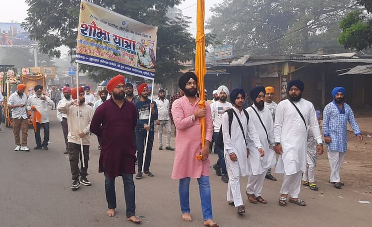 पूर्णिया. सिख धर्म के संस्थापक और सिखों के पहले गुरु, गुरु नानक देव जी के पांच सौ पचपनवें प्रकाशोत्सव के मौके पर गुरुवार अहले सुबह प्रभात फेरी निकाली गयी. ये प्रभात फेरी, गुरुद्वारे से निकल कर आरएनसाव चौक होते हुए फोर्ड कंपनी चौक, नवरतन हाता, भट्ठा बाजार, कालीबाड़ी चौक होकर पुनः गुरुद्वारा तक पहुंची. इस दौरान बड़ी संख्या में सिख अनुयायी स्त्री, पुरुष और बच्चे शामिल रहे. इसके पश्चात भजन कीर्तन का कार्यक्रम किया गया और निशान साहब के पोशाक बदले गये तथा दीवान सजायी गयी और लंगर का भी आयोजन किया गया. वहीं भजन कीर्तन की प्रस्तुति के लिए पटियाला से भाई सुरजीत सिंह रागी जत्थे को आमंत्रित किया गया है. आज गुरुपर्व भव्य रूप में मनाया जाएगा. गुरुद्वारा प्रबंधक कमिटी पूर्णिया के सचिव सरदार दलजीत सिंह विरदी उर्फ़ लवली सिंह ने बताया कि गुरुपर्व के मौके पर प्रातः साढ़े दस बजे से दिन के दो बजे तक शबद, कीर्तन, भजन आदि का आयोजन निर्धारित है वहीँ पाठ समाप्ति के बाद बच्चों द्वारा अरदास और भजन एवं दिन के 12 बजे से सुरजीत सिंह रागी जत्था पटियाला वाले द्वारा भजन कीर्तन का आयोजन किया जाएगा. इसके साथ ही संगत के आने तक अटूट लंगर बरतेगा. फोटो -14 पूर्णिया 9- प्रकाशोत्सव को लेकर निकली प्रभातफेरी