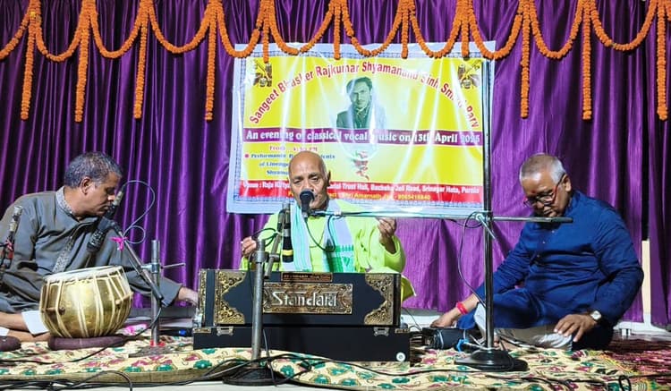 पूर्णिया. रविवार को राजा कीर्त्यानंद मेमोरियल ट्रस्ट हॉल में संगीत भास्कर राजकुमार श्यामानंद सिंह स्मृति पर्व मनाया गया. इस कार्यक्रम में राजकुमार श्यामानंद सिंह संगीत परंपरा के बच्चों द्वारा शास्त्रीय संगीत की प्रस्तुति दी गयी. कार्यक्रम में किलकारी पूर्णिया के बच्चों ने भी हिस्सा लिया. इसका लोगों ने भरपूर आनंद उठाया. इस मौके पर गणमान्य लोगों के साथ साथ कुमार साहब के परिवार के सारे सदस्य उपस्थित थे. कार्यक्रम प्रस्तुत करने वालों में छोटे बच्चों में अनुराग, मानवी, पीहू, भाव्या, कृति. किशोर वय में अदिति, अमृता, अनुप्रिया, सौम्या, आर्या, नंदिनी, दिवाकर, अहम्, करण, युवाओं में विजय सागर, आयुष, सोनी, सरगम ने अपनी प्रस्तुतियों पर खूब तालियां बटोरी. संस्था द्वारा इस वर्ष से संगीत के एक स्टूडेंट को छात्रवृत्ति के रूप में एक वर्ष की शुल्क की माफ़ी एवं एक शील्ड देने की शुरुआत की गयी. इस वर्ष के लिए छात्रवृत्ति हेतु अनुराग झा का चयन किया गया. कार्यक्रम के संयोजक पंडित अमरनाथ झा ने बताया कि उनके गुरुदेव राजकुमार श्यामानंद सिंह के पारिवारिक सदस्यों एवं मेरे शिष्य शिष्याओं के सहयोग से यह आयोजन विगत 23 वर्षों से निरंतर होता चला आ रहा है.