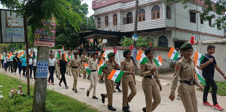 पूर्णिया. पूर्णिया कॉलेज के एनसीसी कैडेट्स ने हर घर तिरंगा रैली निकाली. 35 बिहार बटालियन एनसीसी कर्नल मनीष वर्मा के निर्देश पर और प्रधानाचार्य प्रो शंभूलाल वर्मा एनसीसी पदाधिकारी प्रो ज्ञानदीप गौतम एवं 35 बिहार बटालियन के अधिकारी प्रेम सिंह राजपूत के मार्गदर्शन में 100 से अधिक एनसीसी कैडेट्स ने बढ़चढ़कर अपनी भागीदारी सुनिश्चित की. आओ हर घर तिरंगा फहराएं मिलकर आजादी का अमृत महोत्सव मनाएं का नारा बुलंद करते हुए विश्वविद्यालय और कॉलेज चौक से रैली गुजरी. इस अवसर पर एनसीसी के सीनियर कैडेट्स बंटी, अनमोल, अभिषेक,संजीप हांसदा, रुचि, प्रियांशु राज,प्रिंस,गौरव आदि कैडेट्स ने रैली में अपनी सक्रिय भागीदारी निभायी. फोटो. 13 पूर्णिया 10 परिचय- तिरंगा रैली में शामिल एनसीसी कैडेट्स.