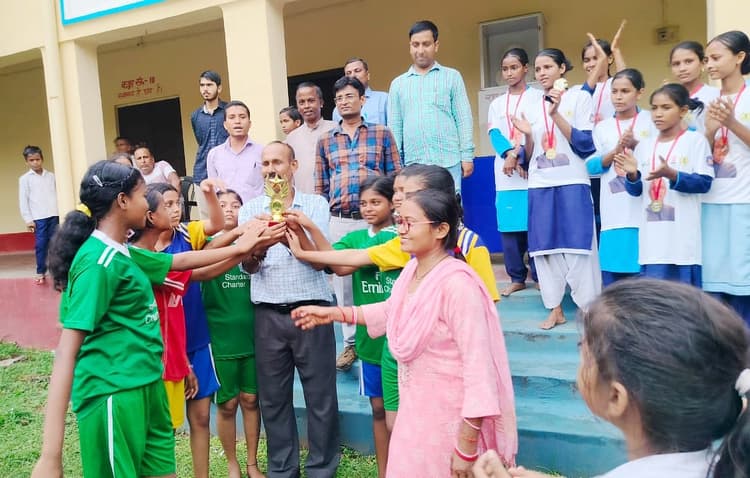 जलालगढ़. राष्ट्रीय खेल दिवस पर एनडी रूंगटा उच्च विद्यालय में अंडर 14 बालिका वर्ग की कबड्डी प्रतियोगिता हुई. इसमें विजेता टीम में शामिल प्रतिभागियों के बीच शनिवार को पारितोषिक वितरण किया गया. एनडी रुंगटा उवि के प्रभारी प्रधानाध्यापक आशीष कुमार ने बताया कि एनडी रूंगटा उच्च विद्यालय और उत्क्रमित उच्च विद्यालय मतियारपुर के छात्राओं के बीच प्रतियोगिता हुई. प्रतियोगिता के आरंभ में हॉकी के जादूगर मेजर ध्यानचंद को श्रद्धांजलि अर्पित कर उनकी जीवनी पर प्रकाश डाला गया. कबड्डी के मुकाबले में दोनों टीमों ने शानदार खेल का प्रदर्शन किया. वहीं मौजूद दर्शक खिलाड़ियों का हौसला बढ़ाते नजर आए. मुकाबला में एनडी रूंगटा उच्च विद्यालय की टीम 33 अंक प्राप्त कर विजेता रही. वहीं उत्क्रमित उच्च विद्यालय मतियारी की टीम 21 उपविजेता रही. विजेता और उपविजेता टीमों को मेडल और पुरस्कार देकर सम्मानित किया गया. रेफरी की भूमिका कुमार तरुण ने निभायी. प्रधानाध्यापक आशीष कुमार ने कहा कि खेल से अनुशासन, टीम भावना और आत्मविश्वास के साथ मानसिक व शारिरिक विकास होता है.