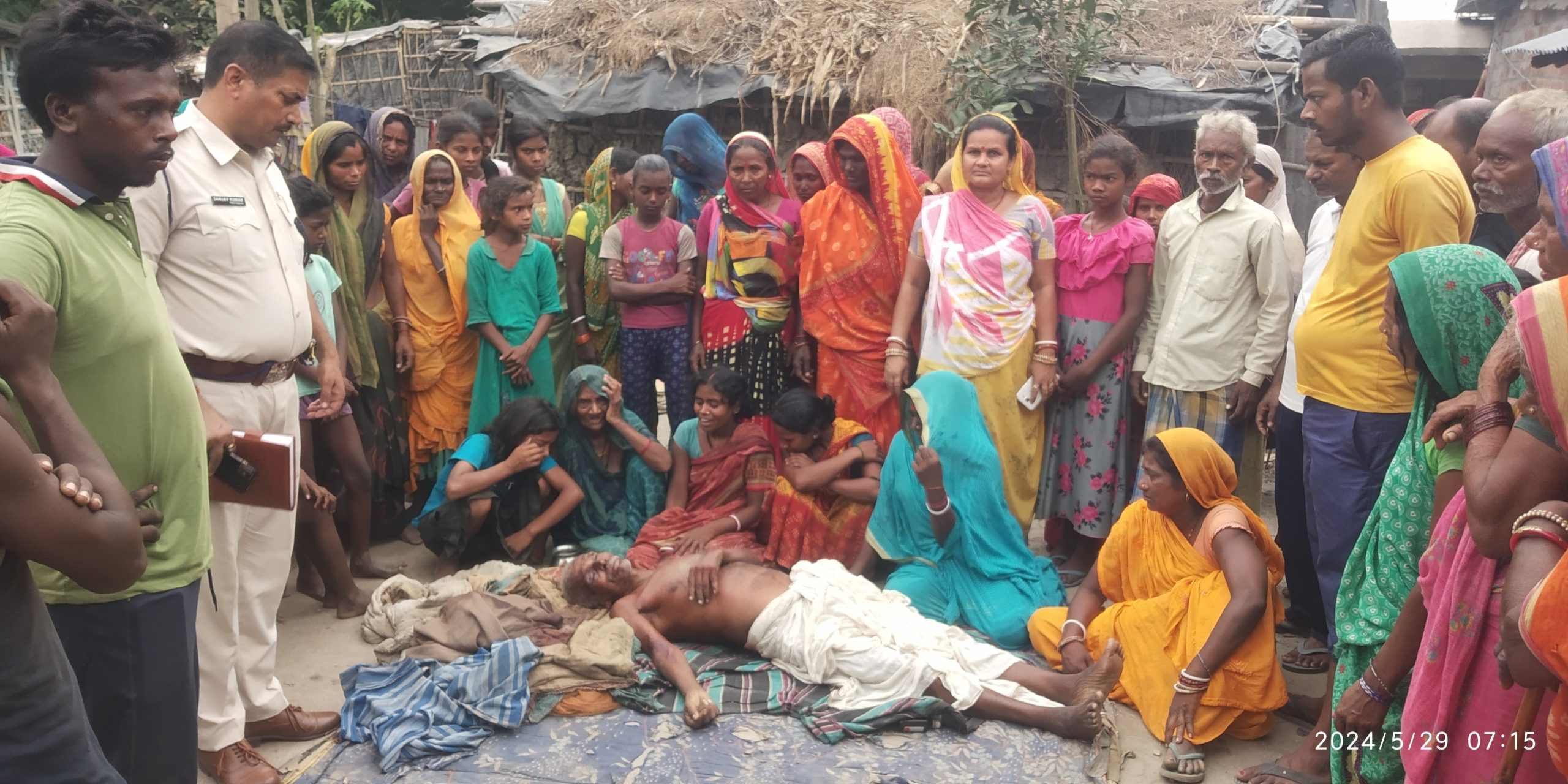 प्रतिनिधि, बीकोठी (पूर्णिया). पूर्व से चल रही दुश्मनी को लेकर पड़ोसियों ने बीती रात सुप्तावस्था में बुजुर्ग की चाकू गोदकर हत्या कर दी. उसकी दाहिनी आंख भी फोड़ दी. मृतक के बायें बाह, कनपटी, पीठ, पंजरा में भी जख्म के निशान पाये गये. जिले के बड़हरा थानाक्षेत्र के सुखसेना पूर्व पंचायत के वार्ड संख्या 4 सुखसेना तीन टोलियां गांव में यह वारदात हुई. मृतक जानकी मंडल (75) गांव के स्व सहदेव मंडल का पुत्र था. धमदाहा एसडीपीओ संदीप गोल्डी ने घटनास्थल की जांच की. बड़हरा थानाध्यक्ष संजय कुमार ने बताया कि शव को पोस्टमार्टम में भेजते हुए जांच पड़ताल की जा रही है. इधर, मृतक के छोटी पुतोहु सीता देवी पति लक्ष्मण मंडल के फर्द बयान पर चार नामजद के विरुद्ध मामला दर्ज कर लिया गया है. थाना में दिए फर्द बयान में बुजुर्ग की पुतोहू ने बताया कि गांव के पड़ोसी से दुश्मनी चल रही है. इधर, घटना की सूचना मिलने पर पुलिस मौके पर पहुंची. धमदाहा एसडीपीओ संदीप गोल्डी के नेतृत्व में एसएफएल टीम ने घटनास्थल पर पहुंचकर जांच पड़ताल करते हुए नमूना संग्रह किया. फोटो. 29 पूर्णिया 23- घटनास्थल पर पहुंची पुलिस
