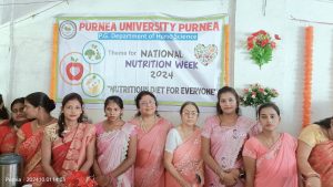 – विवि गृह विज्ञान विभाग में पोषण पर लघु प्रदर्शनी का कुलपति ने किया उदघाटन पूर्णिया. पूर्णिया विवि के स्नातकोत्तर गृह विज्ञान विभाग में राष्ट्रीय पोषण सप्ताह की थीम सभी के लिए पौष्टिक आहार पर लघु प्रदर्शनी का उदघाटन करते हुए कुलपति प्रो. पवन कुमार झा ने कहा कि पौष्टिक आहार सभी के लिए अति आवश्यक है . यह हमें स्वस्थ रखता है और हमारी कार्यक्षमता को बढ़ाता है. डीन छात्र कल्याण प्रो. मरगूब आलम ने कहा कि इस लघु प्रदर्शनी के माध्यम से गृह विज्ञान विभाग ने जहां गृह विज्ञान की छात्राओं के लिए नयी संभावनाओं को तैयार किया है वहीं पोषण के महत्व को भी बताया है. कुलानुशासक प्रो. अंजनी कुमार मिश्रा ने कहा कि यह लघु प्रदर्शनी आनेवाले दिनों में पोषण संबंधी जागरूकता फैलाने में एक महत्वपूर्ण कदम साबित होगी. गृह विज्ञान विभाग की वरिष्ठ व्याख्याता प्रीति सिंह ने कहा कि समुचित पोषण हमारी शारिरिक क्षमता के साथ-साथ मानसिक क्षमता को भी प्रभावित करता है . ———————– गेहूं-चावल के अतिरिक्त रागी का सेवन फायदेमंद : प्रो. तुहिना विजय पूर्णिया विवि की स्नातकोत्तर गृह विज्ञान विभागाध्यक्ष प्रो. डा. तुहिना विजय ने लघु प्रदर्शनी के दौरान कहा कि हम सभी को प्रतिदिन के आहार में गेहूं-चावल के अतिरिक्त रागी को भी शामिल करना चाहिए. इसे सभी आयु वर्ग के व्यक्ति चाहे वो सामान्य हों या रोगी खा सकते हैं . उन्होंने कहा कि इस प्रदर्शनी में उपयोग में लाए गए सभी खाद्य पदार्थों का पोषण एवं स्वास्थ्य से गहरा संबंध है . ——————— पीजी थर्ड सेमेस्टर की छात्राओं ने कहा- पोषण जागरूकता हमारा लक्ष्य पूर्णिया विश्वविद्यालय के गृह विज्ञान विभाग के पीजी थर्ड सेमेस्टर की छात्राओं ने लघु प्रदर्शनी को साकार किया. छात्राओं ने कहा कि हमारा लक्ष्य पूरे समाज में पोषण संबंधी जागरूकता का प्रसार करना है जिसके लिए हम सभी संकल्पित हैं. लघु प्रदर्शनी में सभी वर्गों की आर्थिक स्थिति को ध्यान में रखते हुए खाद्य पदार्थ यथा रागी स्टीक चाट , क्रन्ची बाइट , प्रोटीन सलाद , सरस छाछ , रागी मरूआ , सहजन की पत्तियां , भुने चने , मूंगफली , तिल , गुड़ , अंकुरित दाल , दही आदि का चयन किया गया . —————- फोटो. 1 पूर्णिया 18 परिचय- पूर्णिया विवि के गृह विज्ञान विभाग की ओर से लघु प्रदर्शनी में विभागाध्यक्ष प्रो. तुहिना विजय, शिक्षक व छात्राएं