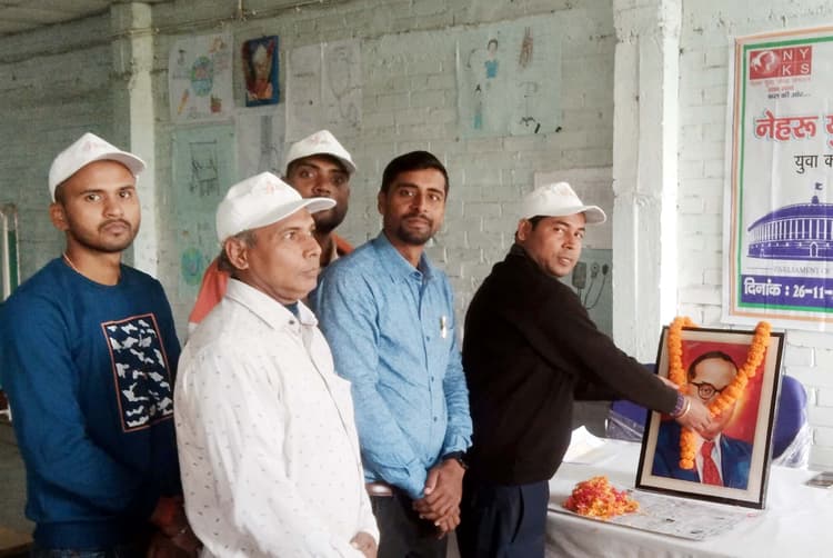 पूर्णिया. नेहरू युवा केंद्र युवा कार्यक्रम एवं खेल मंत्रालय भारत सरकार पूर्णिया द्वारा शिल्पी एजुकेशन ट्रस्ट मरंगा में संविधान दिवस पर कार्यक्रम आयोजित किया गया. इस कार्यक्रम में सैकड़ो युवाओं ने भाग लिया. मौके पर संजीव कुमार ने सभी को संविधान दिवस की बधाई दी और संविधान के जनक डॉ भीमराव अंबेडकर के तेल चित्र पर माल्यार्पण कर कार्यक्रम का विधिवत प्रारंभ किया. उन्होंने संविधान के बारे में विस्तृत जानकारी दी. इस अवसर पर नेहरू युवा केंद्र के एमटीएस राजा बाबू एवं स्वयंसेवक प्रिया कुमार लाडू ने संविधान दिवस के अवसर पर सभी को शपथ दिलायी. इस अवसर पर भाषण प्रतियोगिता, वृक्षारोपण, पद यात्रा जैसे कार्यक्रम किए गए.इस मौके पर पर संस्था के सहयोगी राहुल कुमार, विवेक कुमार, विनोद कुमार, मो आलमगीर, अशोक प्रसाद सिंह, गौतम कुमार, मोहम्मद इमाम, बिट्टू कुमार, सनौली कुमारी, गीता कुमारी आदि मौजूद थे. फोटो. 26 पूर्णिया 11- डॉ.भीमराव अंबेडकर के तेल चित्र पर माल्यार्पण करते