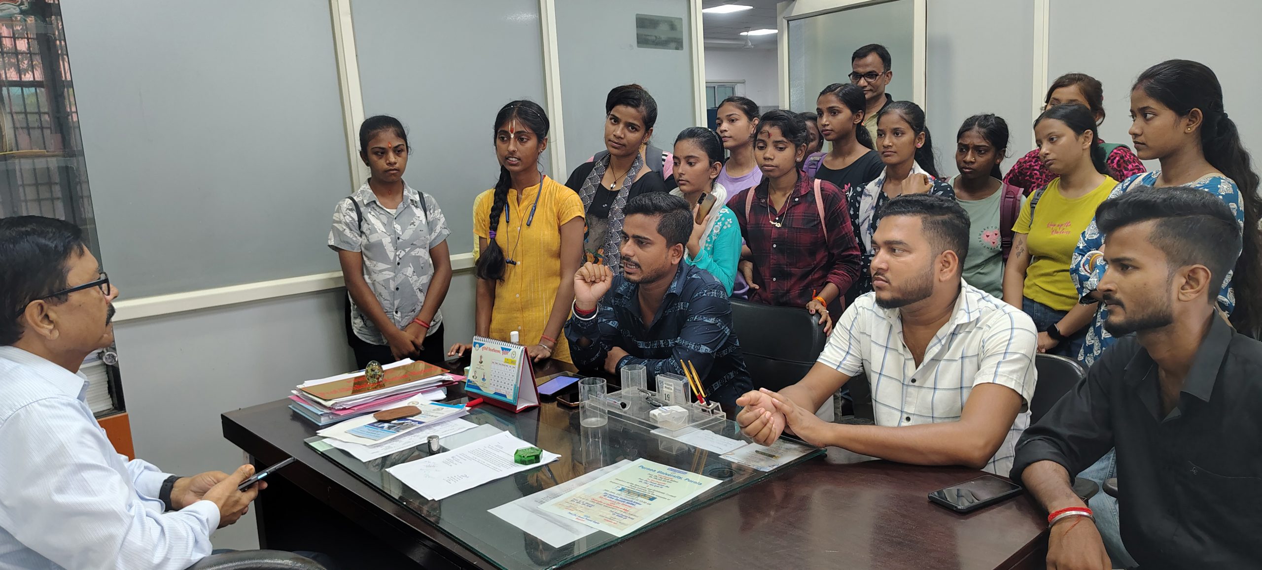 पूर्णिया. सत्र 2022-25 पार्ट टू परीक्षा में पूर्णिया महिला महाविद्यालय की छात्राओं को सोशियोलॉजी में मिले अंक को लेकर छात्र नेताओं ने आपत्ति दर्ज करायी है. पूर्णिया विश्वविद्यालय के कुलानुशासक प्रो अंजनी कुमार मिश्रा को दिये आवेदन में बताया गया कुल 138 छात्राओं में से मात्र 08 पास हुई हैं. किसी एक विषय के अंक को नहीं जोड़ने के कारण शेष 130 छात्राओं को प्रमोट कर दिया गया है. पूर्णिया कॉलेज छात्र संघ के पूर्व अध्यक्ष करण यादव एवं पूर्व कोषाध्यक्ष राणा यादव ने मामले से अवगत कराया एवं समाधान की मांग की. वहीं सत्र 2020-23 के रिटोटेलिंग का परीक्षा परिणाम एवं मार्क्सशीट शीघ्र जारी करने की आवश्यकता जतायी जिससे कन्या उत्थान योजना का लाभ मिल सके. मौके पर छात्र नेता सतीश यादव , राजा यादव भी उपस्थित थे. फोटो. 14 पूर्णिया 12- कुलानुशासक से मिलते छात्र नेता