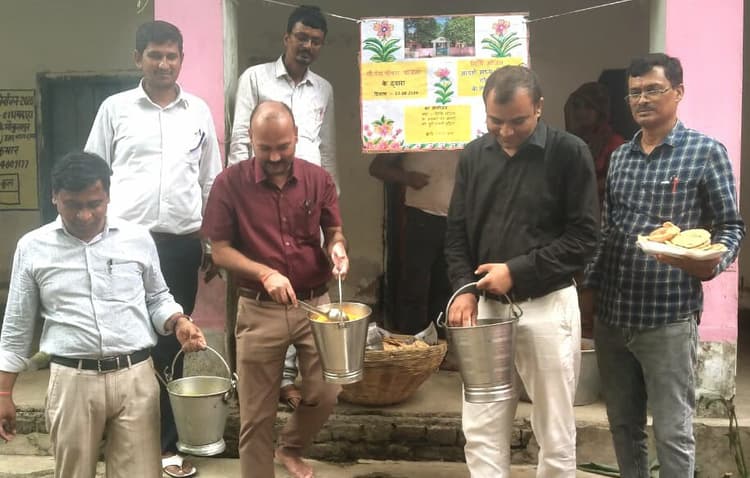 केनगर. विभागीय निर्देशानुसार प्रखंड के 13 विद्यालयों में शनिवार को मध्याह्न भोजन योजना के तहत तिथि भोजन का आयोजन किया गया. मध्य विद्यालय बेला रिकाबगंज में जिला शिक्षा पदाधिकारी शिवनाथ रजक एवं डीपीओ एमडीएम शशि चंदन चौधरी, केनगर बीआरपी एमडीएम अजीत सिंह तथा आदर्श मध्य विद्यालय गोकुलपुर में आयोजित कार्यक्रम में कृत्यानंदनगर बीडीओ आशीष कुमार, सीओ दिवाकर कुमार, डीपीओ एमडीएम, डीपीएम एवं केनगर बीआरपी एमडीएम और गोकुलपुर के मुखिया नीरज कुमार पहुंचे. बीडीओ,सीओ , मुखिया नीरज कुमार एवं विद्यालय के प्रधानाध्यापक राजीव रंजन ने छात्र – छात्राओं को स्वयं भोजन परोस कर खिलाया. इसके उपरांत अधिकारियों एवं जन प्रतिनिधियों ने भी भोजन किया. केनगर बीआरपी एमडीएम ने बताया कि तिथि भोजन में मेन्यू के अतिरिक्त छात्र – छात्राओं को पूरी- सब्जी एवं बूंदिया खिलाया गया. फोटो – 4 पूर्णिया 14-बच्चों को भोजन परोसते बीडीओ, सीओ, मुखिया व अन्य