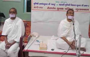 पूर्णिया. आचार्य श्री भिक्षु के मासिक पुण्यतिथि के अवसर पर तेरापंथ सभा भवन गुलाबबाग में तेरापंथ धर्म संघ के एकादश्म अधिशास्ता महातपस्वी महामनस्वी आचार्य श्री महाश्रमण जी के विद्वान् सुशिष्य मुनि श्री आनंद कुमार जी कालू ठाणा के पावन सानिध्य मे ”एक शाम आचार्य श्री भिक्षु के नाम भक्ति संध्या का आयोजन किया गया. कार्यक्रम का शुरुआत मुनि श्री आनंद कुमार जी ‘कालू’ के महामंत्रोचार के साथ हुई. फिर, मुनि श्री ने ‘भिक्षु के चरणां, चालां रे आपा सगला’ गीतिका की प्रस्तुति देकर श्रोताओ को भाव विभोर कर दिया. मुनि श्री विकाश कुमार जी ने हिचकी आवे रे, स्वामीजी थांरी याद सतावे रे क हिचकी आवे रे, भावपूर्ण गीतिका की प्रस्तुति देकर श्रोताओं को मंत्रमुग्ध कर दिया. इस अवसर पर तेरापंथ वालो भाग्य सहरालो गीत से पंकज डागा ने सभी का मन मोह लिया और तेरस की है रात को गौतम फुलफगर उर्फ शेरू ने भी अपने भजन से लोगो में भक्ति का रंग घोल दिया. पूर्णिया सभा से भी गायक आए और गुलाबबाग की भजन मंडली ने सभी को भजनों का रसपान कराया. भजन समापन के बाद तेयूप के सदस्य प्रवीण नौलखा ने सभी का आभार प्रकट किया. भक्ति संध्या में तेरापंथ सभा, महिला मंडल, युवक परिषद के सभी सदस्य सक्रिय रूप से उपस्थित थे1 कार्यक्रम का समापन मुनि श्री के मंगल पाठ से हुआ.