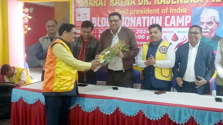 पूर्णिया. भारत के प्रथम राष्ट्रपति देशरत्न डॉ राजेंद्र प्रसाद की जयंती पर लायंस क्लब ऑफ पूर्णिया ग्रेटर द्वारा रक्तदान शिविर का आयोजन किया गया. कार्यक्रम की अध्यक्षता क्लब प्रेसिडेंट उदय शंकर प्रसाद सिंह ने की. रक्तदान शिविर में मुख्य अतिथि के रूप में डॉ देवी राम और विशिष्ट अतिथि आइएमए के अध्यक्ष डॉ सुधांशु कुमार, डॉ. मुकेश कुमार और लायंस क्लब के पूर्व डिस्ट्रिक्ट गवर्नर डीसी संचेती मौजूद थे. कार्यक्रम के शुरुआत में सबसे पहले डॉ राजेंद्र प्रसाद के तैल चित्र पर पुष्प माला चढ़ाकर उन्हें नमन करते हुए दीप प्रज्ज्वलित कर विधिवत शुरुआत की गयी. मुख्य अतिथि डॉ देवी राम ने कहा कि एक साथ दो-दो कार्यक्रम कर लायंस क्लब ऑफ पूर्णिया ग्रेटर ने पूर्णिया को एक संदेश दिया है कि हमारा क्लब जहां एक ओर मानवता के प्रति समर्पित है वहीं दूसरी ओर हम अपने पुरखों को याद करके समाज में स्मृति की संस्कृति को विकसित करने का काम करते हैं. आइएमए अध्यक्ष डॉ सुधांशु कुमार ने रक्तदान की महत्ता और और इसके प्रति फैली भ्रांतियों को दूर करने का प्रयास किया. डॉ मुकेश कुमार ने कहा कि ऐसे मानवता के प्रति समर्पित कार्यक्रमों के हम लोग सदैव मदद करने को तैयार रहते हैं. पूर्व डिस्ट्रिक्ट गवर्नर डी सी संचेती ने पूर्णियां ग्रेटर की प्रशंसा करते हुए कहा कि जिस सेवा भाव से यह क्लब कार्यक्रम करता है वह काबिले तारीफ है. यूको बैंक के अवकाश प्राप्त पदाधिकारी ए के बोस ने समय देकर आगे भी इस तरह के आयोजन में सहयोग का आश्वासन दिया. कार्यक्रम को सफल और सुंदर संचालन करते हुए क्लब के वरीय उपाध्यक्ष पंकज कुमार ने रक्तदान शिविर के आयोजन की महत्ता और इसमें सहयोग करने वाले का विशेष आभार प्रकट किया. राष्ट्रपति से सम्मानित पूर्व प्रधानाध्यापक संजय कुमार सिंह ने कहा कि रक्तदान महादान है.इसका न कोई विकल्प है न कोई कीमत.इस सेवा से सीधा नया जीवन मिलता है. क्लब प्रेसिडेंट उदय शंकर प्रसाद सिंह ने कहा कि हम और हमारा क्लब लगातार इस तरह के मानव हित से जुड़े कार्यक्रम के लिए सदैव प्रयत्नशील है. रक्तदान देने वाले में मुख्य रूप से क्लब प्रेसिडेंट उदय शंकर प्रसाद सिंह, निलेश रंजन, किशन कुमार, मिथिलेश कुमार, संतोष कुमार, प्रियरंजन कुमार, बिनोद कुमार मंडल, केशव कृष्ण, रंजित रंजन सहित अनेक समाजसेवी उत्साही युवक शामिल हैं. इस मौके पर वरीय उपाध्यक्ष पंकज कुमार, क्लब के वरीय पदाधिकारी नित्यानंद कुमार, नंदकिशोर जायसवाल, शिवकुमार चौधरी, मनोरंजन कुमार, राजेश कुमार सिंह, डॉ केके चौधरी, बबलू यादव, बुजुर्ग समाज से एमएच रहमान, समाजसेवी संजीव शास्त्री सहित अनेक गणमान्य लोगों ने कार्यक्रम को सफल बनाने में महत्वपूर्ण योगदान दिया. कार्यक्रम के अंत में सभी रक्तदा