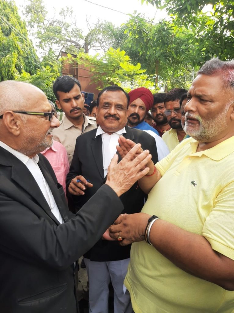 फोटो-13 पूर्णिया 6- कोर्ट में वकीलों से मिलते सांसद पप्पू यादव ……………. ……..पप्पू यादव ने कहा- किसी को छोड़ेंगे नहीं, हम सुप्रीम कोर्ट तक लड़ेंगे