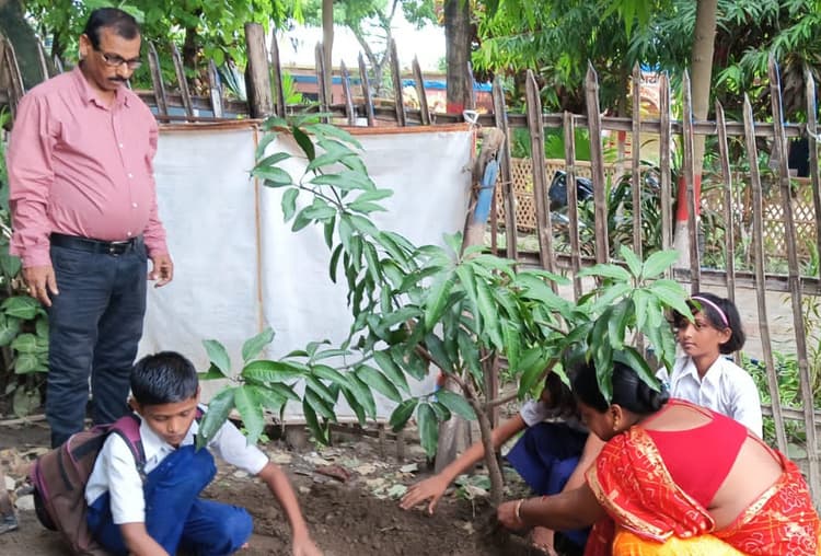 पूर्णिया. उफरैल मध्य विद्यालय में सोमवार को पौधरोपण कार्यक्रम का आयोजन किया गया. इसमें विद्यालय के शिक्षक, शिक्षिका बच्चे समेत अभिभावक शामिल थे. बच्चों तथा अभिभावक समेत वृक्षारोपण कार्यक्रम किया. कार्यक्रम में बच्चों के माताओं ने बढ़-चढ़ कर हिस्सा लिया. पौधरोपण कार्यक्रम का मुख्य उद्देश्य बच्चों तथा अभिभावकगण के बीच पर्यावरण जागरूकता फैलाना व इस भीषण गर्मी से निजात पाने के लिए वृक्षों की महत्ता समझाना था. मौके पर राष्ट्रपति पुरस्कार प्राप्त प्रधानाध्यापिका अर्चना ने बच्चों एवं अभिभावकों से पर्यावरण के प्रति जागरूकता फैलाने की आग्रह की. इस मौके पर विद्यालय के शिक्षक अजय कुमार, अभिषेक पंकज, राजीव रंजन भारती, गीता कुमारी, चंदा कुमारी, डोमन साह, सोनी कुमारी, मौसमी दत्त, विशाल शर्मा, अमित आनंद आदि मौजूद थे. फोटो:2 पूर्णिया 3- विद्यालय परिसर में माता के साथ पौधरोपण करते बच्चे.