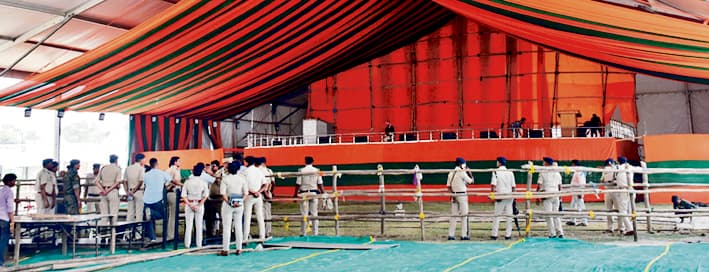 सोमवार को प्रक्षेत्र के डीआइजी विकास कुमार एवं एसपी उपेंद्र नाथ वर्मा के उपस्थिति में सुरक्षा का जायजा लिया गया. उपस्थित दर्जनों पुलिस अधिकारियों को उनके कार्य सौंपे गए. सभा स्थल के दक्षिण स्थित सड़क किनारे के मकानों का जायजा लिया गया. मकान में रहनेवाले लोगों की पूरी जानकारी ली गयी .इन मकानों के छतों पर पुलिस बलों को तैनात किया जा रहा है.