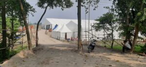 शीशाबाड़ी की जमीन को समतल कर बनाए जा रहे मंच और पंडाल