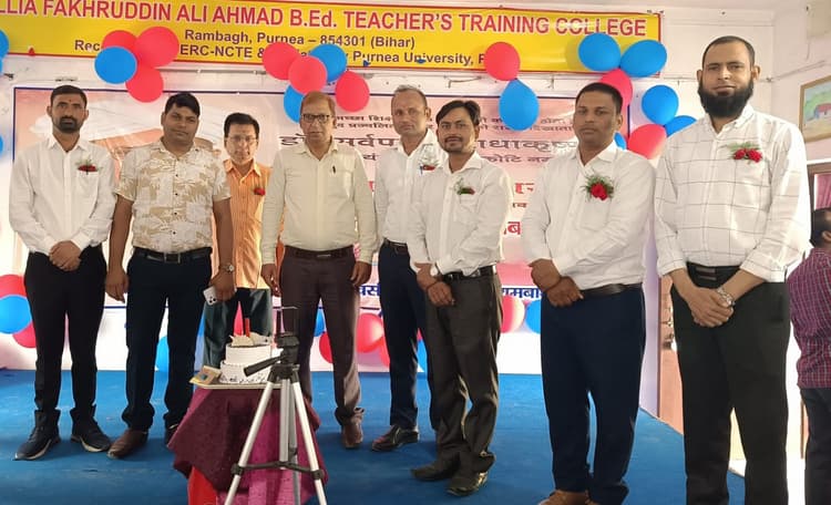 पूर्णिया. शिक्षक दिवस के अवसर पर मिल्लिया फखरूद्दीन अली अहमद बीएड शिक्षक प्रशिक्षण महाविद्यालय, रामबाग में शिक्षक दिवस बड़े ही हर्षोल्लास के साथ मनाया गया. प्राचार्य डा. शहबाज रिजवी एवं सभी शिक्षकों के द्वारा दीप प्रज्वलित कर कार्यक्रम का शुभारंभ किया गया. विभिन्न प्रकार के सांस्कृतिक कार्यक्रम, लघु नाटक, हास्यप्रद, प्रहसन एवं भाषण का कार्यक्रम प्रस्तुत किया गया. इसमें दो लघु नाटक दहेज प्रथा एक समाजिक कुरीति एवं लोकतंत्र में मताधिकार का प्रयोग विषय पर छात्राध्यापक एवं छात्राध्यापिकाओं ने अपनी प्रस्तुति दी जो बहुत ही प्रेरणादायक रहा.स्वागत भाषण में प्राचार्य डा. शहबाज रिजवी ने भी शिक्षा को जीवन के साथ जोड़ने तथा डा. सर्वपल्ली राधाकृष्णन के जीवन से प्रेरणा लेने की सलाह दी. इस मौके पर मनोज कुमार साह, ध्रुव कुमार, प्रणय कुमार झा, कमलेश कुमार, प्रवीण कुमार सिंह, मो. शहरान, राजीव कुमार, अंसारूल हक, शादाब कौशर, शफीर अहमद, सूरज कुमार, बुनो, सावित्री, उमा एवं अन्य का भी इस कार्यक्रम को सफल बनाने में अहम योगदान रहा. फोटो. 6 पूर्णिया 12- कार्यक्रम में उपस्थित शिक्षक एवं अन्य