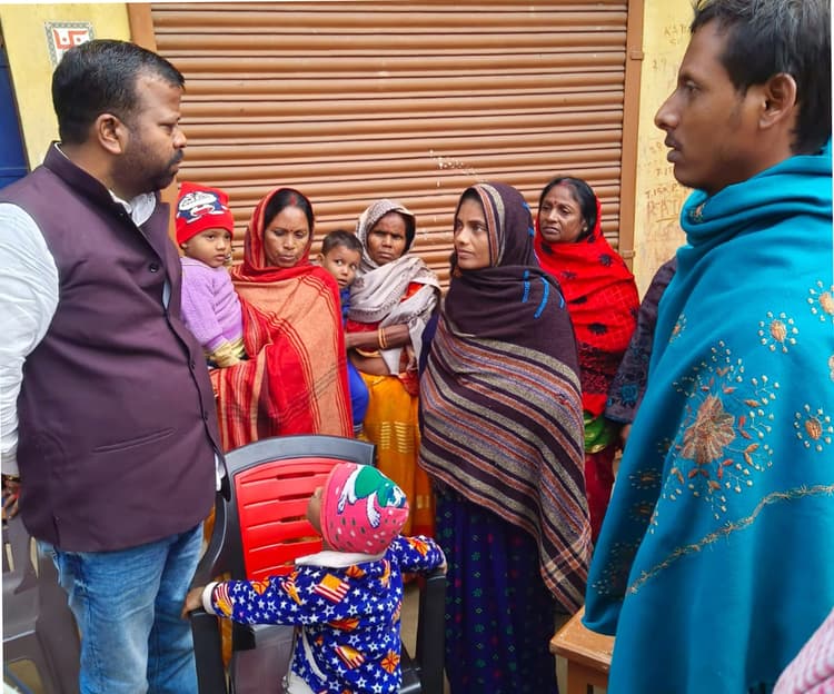 पूर्णिया. सड़क हादसे में शहर के शिवनगर, नेवालाल चौक (वार्ड 10) निवासी नंद किशोर कुमार की मौत हो गयी थी. मंगलवार को सांसद पप्पू यादव के प्रतिनिधि व प्रवक्ता राजेश यादव ने शोकाकुल परिवारों से मुलाकात की और उनके परिवार को हरसंभव मदद का भरोसा दिलाया. सांसद प्रवक्ता राजेश यादव ने डीटीओ (जिला परिवहन अधिकारी) से बातचीत कर मृतक के परिवार को सरकारी सहायता राशि शीघ्र उपलब्ध कराने का आग्रह किया. इसके साथ ही, दुर्घटनास्थल पर दुर्घटनाओं को रोकने के लिए स्पीड ब्रेकर लगाने की आवश्यकता पर भी जोर दिया. मृतक नंद किशोर कुमार अपने पीछे पत्नी शोभा देवी और तीन बच्चों, नक्स कुमार (3 वर्ष), राखी कुमारी (13 वर्ष), और रिया कुमारी (8 वर्ष) को छोड़ गये हैं. परिवार इस त्रासदी से गहरे सदमे में है. सांसद के प्रतिनिधियों ने हरसंभव मदद का आश्वासन देते हुए सरकार और प्रशासन से भी परिवार की मदद के लिए तुरंत कदम उठाने का आग्रह किया. सांसद पप्पू यादव से भी बात कर हरसंभव मदद की जायेगी. मौके मो सोयेब, प्रवीण कुमार, दिवाकर ठाकुर, मंटू दास, गुड़ु शर्मा, श्रवण यादव, राजेश कुमार आदि मौजूद थे. फोटो- 10 पूर्णिया 16- शोकाकुल परिवार से मिलते सांसद के प्रवक्ता राजेश यादव.