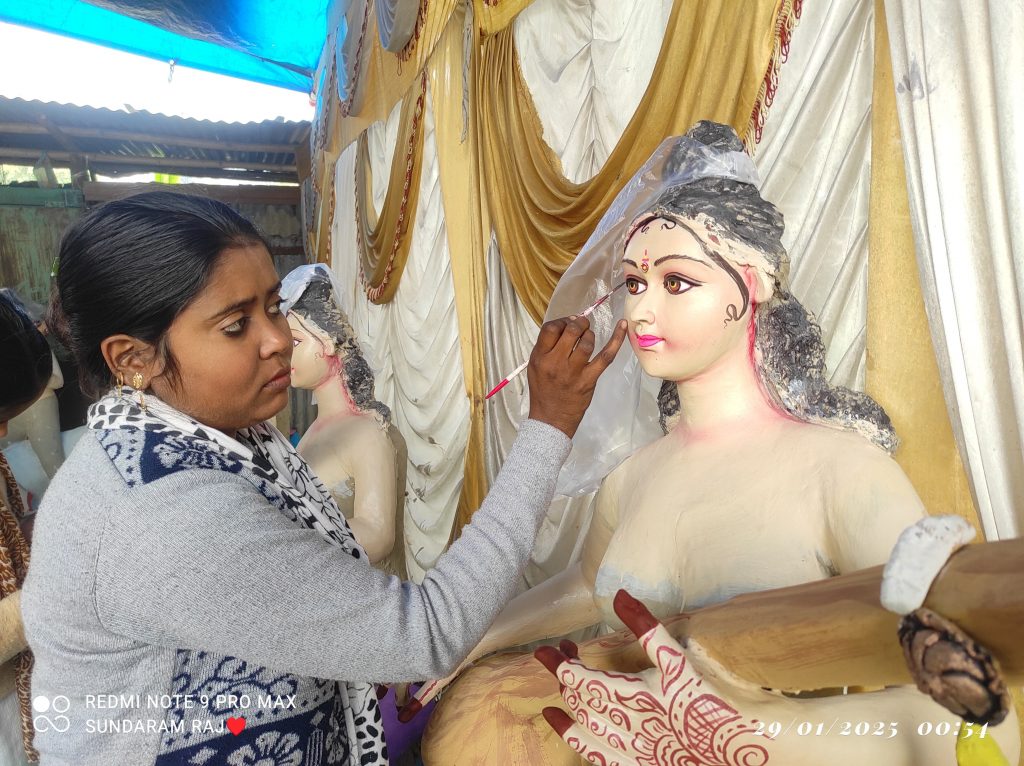 बेजान मिट्टी में जान फूंक सरस्वती की प्रतिमा बना रही पूर्णिया की बेटी