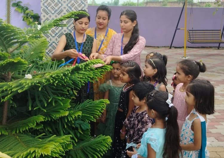 पूर्णिया. बहना ने भाई की कलाई से प्यार बांधा है.. प्यार के दो तार से संसार बांधा है… फिल्म रेशम की डोरी के लिए शैलेन्द्र के लिखे इस गीत को रामबाग स्थित किड्जी रीडम किड्स प्ले स्कूल के बच्चों ने चरितार्थ किया. हर साल की तरह इस बार भी स्कूल में रक्षा बंधन खूब धूमधाम से मनाया गया. जहां बहनों ने भाई की कलाई पर राखी बांध कर लम्बी उम्र की कामना की वहीं एक दूसरे को मिठाई खिलाकर रक्षा बंधन की बधाई दी. स्कूल प्रबंधन के द्वारा भी बहनों के लिए बेहतरीन गिफ्ट की व्यवस्था की गयी थी जिसे भाई ने बहनों को दिया. किड्जी स्कूल में रक्षा बंधन के आयोजन का सबसे बड़ा आकर्षण यह था कि बच्चों ने अपने टीचर के सहयोग से खुद राखी तैयार कर उसे भाइयों की कलाई पर बांधा. स्कूल के निदेशक शशि भूषण सिंह ने बताया कि इस रक्षाबंधन पर बच्चों और टीचर ने मिलकर पेड़ों पर राखी बांध कर पर्यावरण की रक्षा करने का वादा किया. स्कूल के डायरेक्टर ने कहा राखी के धागे भाई बहन के प्रेम और भरोसे का प्रतीक है. हमारी ज़िन्दगी में कितनी भी परेशानी क्यों न आए हमें भाई और बहन के पवित्र रिश्ते का सम्मान करना ही चाहिए. सम्पूर्ण आयोजन को सफल बनाने में टीचर मोना, पलक, चंदा और महक का महत्वपूर्ण योगदान रहा. फोटो -18 पूर्णिया 12- पौधे को राखी बांधती छात्राएं और टीचर