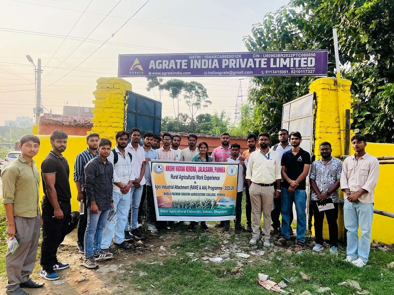 जलालगढ़. कृषि विज्ञान केंद्र जलालगढ़ में ग्रामीण कार्य अनुभव प्राप्त करने के लिए स्नातक कृषि के छात्र अंतिम सेमेस्टर में शिक्षा प्राप्त करने पहुंचे. इसमें कूल 20 छात्रों ने निबंधन कराया. केवीके के वरीय वैज्ञानिक सह प्रधान ने बताया कि ये छात्र भारतवर्ष के विभिन्न कृषि विश्वविद्यालय भोला पासवान शास्त्री कृषि महाविद्यालय पूर्णिया, एलएनसीटी भोपाल, मेरठ तथा जगन्नाथ विश्वविद्यालय जयपुर से कृषि विज्ञान केंद्र जलालगढ़ में शिक्षा प्राप्त करने पहुंचे. केंद्र के वरीय वैज्ञानिक सह प्रधान डॉ के एम सिंह ने बताया कि ग्रामीण कार्य अनुभव कार्यक्रम कृषि स्नातकों के लिए अत्यंत महत्वपूर्ण कार्यक्रम है. क्योंकि जो छात्र कॉलेज में किताबी ज्ञान सीखते हैं उनका व्यवहारिक ज्ञान केंद्र में हो रहे विभिन्न कार्यक्रम, किसानों के खेतों में हो रहे कार्यक्रम कृषि उत्पादन में भिन्नता, उनकी कमी के कारण एवं निदान ढूंढते हैं. किसानों के साथ मिलकर उनकी समस्याओं को जानना और उनके लिए कृषि उत्पादन की योजना बनाने का कार्य करते हैं. इसी क्रम में ग्रामीण कार्य अनुभव प्राप्त कर रहे रावे छात्रों ने पूर्णिया जिले के कोसी डेयरी मरंगा का भ्रमण किया. जिसमें उन्होंने दूध उत्पादन एवं उनसे बनने वाले विभिन्न डेयरी उत्पाद बनाने की जानकारी प्राप्त की. इसके अलावे ए ग्रेट कंपनी में मखाना प्रोसेसिंग प्लांट तथा उसके विभिन्न परिचालन संबंधित जानकारी प्राप्त की. कसबा की मां अंबे नर्सरी में जाकर पौध नर्सरी) बनाने की प्रक्रिया उनकी ग्राफ्ट गुटी बनाने तरीके का भी अध्ययन किया. रावे के छात्रों ने कृषि उद्योग से संबंधित विभिन्न पहलू की जानकारी ली तथा इनका क्रियान्वयन रावे छात्र डिग्री उपरांत स्वरोजगार के लिए अथवा किसानों को आगे बढ़ाने के लिए कार्य करेंगे. मौके पर कार्यक्रम का नेतृत्व केवीके के वैज्ञानिक डॉ आतिश सागर ने किया. साथ में यशवंत कुमार का भी सहयोग रहा.