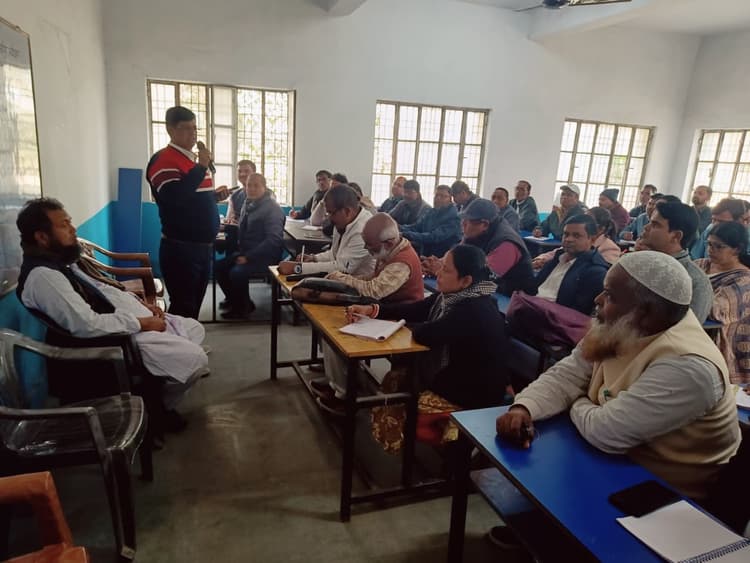 डगरूआ. प्रखंड मुख्यालय स्थित उच्च विद्यालय में मासिक गुरु गोष्ठी का आयोजन बीइओ अल्ताफ अहमद खान की अध्यक्षता में किया गया.इस गोष्ठी में प्राथमिक, मध्य व उच्च विद्यालय के प्रधान सहित संकुल समन्वयकों ने संयुक्त रूप से भाग लिया. इस गुरु गोष्ठी में प्रथम पाली में मध्य व उच्च विद्यालय के प्रधान एवं द्वितीय पाली में प्राथमिक विद्यालय के प्रधान ने भाग लिया.इस गुरु गोष्ठी में विद्यालय प्रधान को चेतना सत्र में लाउडस्पीकर का प्रयोग करने, प्रत्येक तीन माह में श्यामपट का कालीकरण करने, विद्यालय के सभी शिक्षको को नियमित पाठ टीका का संधारण करने, विद्यालय के सभी वर्ग में दैनिक तालिका उपलब्ध रहने, सभी शिक्षकों को छात्रों के क्लासवर्क, होमवर्क और वर्ग शीट की नियमित जांच करने, सभी विद्यालय में नियमित शिक्षक अभिभावक संगोष्ठी का आयोजन करने, सभी विद्यालय के शिक्षक शिक्षिका व छात्र छात्रा का एफआरएस के माध्यम से टैब से उपस्थिति बनाना अनिवार्य बताया गया.वहीं सभी विद्यालय शिक्षक को आउट करके ही विद्यालय से निकलने को कहा गया. बताया गया कि अन्यथा अनुपस्थित माना जायेगा. वहीं कम्पोजिट ग्रांट की राशि खर्च कर उपयोगिता प्रमाणपत्र देने को कहा गया. इसके अतिरिक्त कई अन्य दिशा निर्देश दिये गये.इस मौके पर विद्यालय प्रधान ओम प्रकाश, इम्तियाज आलम, मुरलीधर दास, गजेन्द्र कुमार,जगदीश रजक, प्रमोद चन्द्र विश्वास, अब्दुल जलील, मुख्तार आलम, राजेश कुमार, गुफरान अहमद, शाहिन अख्तर सहित कई प्राथमिक, मध्य व उच्च विद्यालय के प्रधान उपस्थित थे.