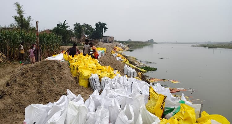 बायसी. प्रखंड के ताराबाड़ी पंचायत के वार्ड नंबर 8 टिक्कर खाड़ीटोला में नदी कटाव रोकने के लिए एंटी रोजन योजना के तहत जिओ बैग और ईसी बैग का कार्य चल रहा है. साइट पर काम करा रहे मुकेश कुमार ने बताया कि एंटी रोजन योजना के तहत 250 मीटर तक यह कार्य चलेगा . पहले ईसी बैग में बालू डालकर नदी की सतह में बैठाया जाता है. फिर जियो बैग मैं बालू डालकर उसके ऊपर रखा जाएगा.बोरी को जाल से लपेटा जाएगा, ताकि बाद में बोरी इधर-उधर नहीं हो. ग्रामीण सुकारू, जवादुल, सद्दाम ,मंसूर एवं जफरुल ने बताया कि वे लोग नदी कटाव से बहुत परेशान हैं.पिछले साल कई लोगों का घर कनकई नदी में कट गया, मगर इस बार सरकारी स्तर पर कटाव रोकने के लिए एंटी रोजन कार्य किया जा रहा है. अब आने वाले समय में उनलोगों के सामने कटाव की समस्या नहीं होगी.