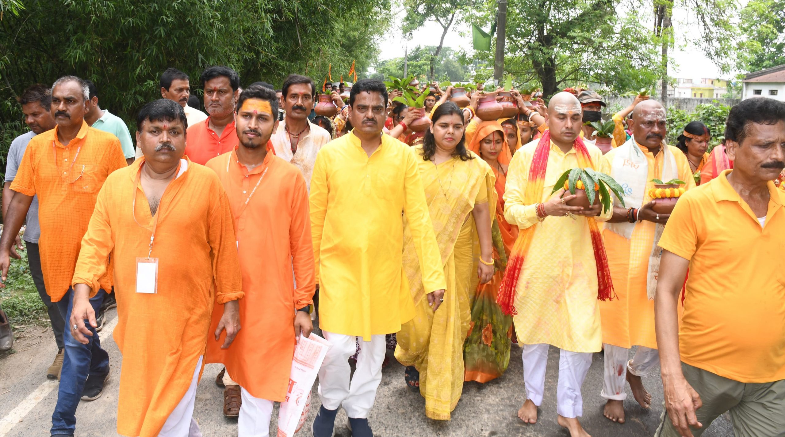 प्राण प्रतिष्ठा से पूर्व शहर में निकाली गयी कलश यात्रा, आज होगा मंडप पूजन कलश शोभा यात्रा में महापौर विभा कुमारी, समाजसेवी जितेंद्र यादव हुए शामिल पूर्णिया. महावीर स्थान मधुबनी बाजार में अचल प्राण प्रतिष्ठा महायज्ञ को लेकर महावीर स्थान समिति मधुबनी बाजार द्वारा रविवार को भव्य कलश शोभा यात्रा निकाली गयी. कलश शोभा यात्रा में सैकड़ों की संख्या में शहरवासी सहित पूर्णिया की महापौर विभा कुमारी, समाजसेवी जितेंद्र यादव सहित कई गणमान्य लोग भी शामिल हुए. इस पांच दिवसीय अनुष्ठान के पहले दिन रविवार को कलश यात्रा, सपत्नीक यजमान का नदी तट पर प्रायश्चित एवं जल ग्रहण किया गया. जबकि सोमवार को मंडप पूजन एवं मूर्तियों का महास्नान और जलाधिवास कराया जाएगा. मंगलवार को आवाहित देवता पूजन, गांधाधिवास, पुष्पाधिवास सहित कई विधि विधान किए जाएंगे. बुधवार को प्रतिमा को नगर भ्रमण कराने के पश्चात आवाहित देवता पूजन, हवन, आरती, पुष्पांजलि एवं 24 घंटे का अष्टयाम संकीर्तन एवं प्रसाद का वितरण किया जाएगा. गुरुवार को अष्टयाम संकीर्तन का समापन के बाद भंडारा का आयोजन किया गया है. महापौर विभा कुमारी ने कहा कि आयोजन को लेकर पूरे क्षेत्र का माहौल भक्तिमय बना हुआ है. यज्ञस्थल पर नगर निगम द्वारा साफ सफाई, शुद्धपेयजल आदि की व्यवस्था की गयी है. कलश यात्रा में शामिल होने हनुमान मंदिर पहुंचे महापौर विभा कुमारी एवं समाजसेवी जितेंद्र यादव का स्वागत मंदिर कमेटी के सदस्यों ने किया. महापौर विभा कुमारी एवं समाजसेवी जितेंद्र यादव ने मंदिर में पूजा-अर्चना कर जिले एवं नगरवासियों के लिए सुख शांति और समृद्धि की कामना की. शोभा यात्रा में शामिल श्रद्धालुओं को धूप एवं गर्मी से बचाने के लिए नगर निगम द्वारा वाटर फॉगिंग मशीन से पानी का छिड़काव भी किया जा रहा था. यज्ञस्थल पर नगर निगम द्वारा साफ-सफाई, शुद्ध पेयजल आदि की व्यवस्था भी की गयी है. कलश यात्रा मुख्य रूप से उप महापौर पल्लवी गुप्ता, वार्ड पार्षद बबलू सहाय, अमित सोनी, रहीम अंसारी, वार्ड पार्षद प्रतिनिधि राजीव राय, मो शकील, बहादुर यादव, मनोज साह, पूर्व वार्ड पार्षद सोहेल मुन्ना, अजय श्रीवास्तव, शंभू केशरी, अमर केशरी, बमबम केशरी, किशोर केशरी, बबलू केशरी, लाल राय सहित सैकड़ों की संख्या में शहरवासी शामिल थे.