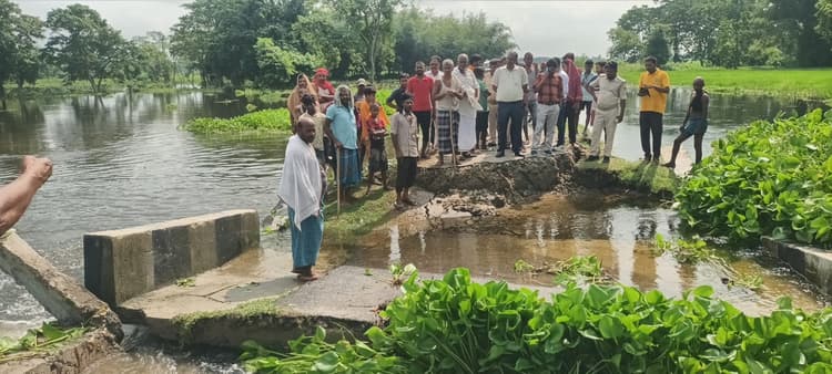 – एसडीओ ने ध्वस्त पुल का लिया जायजा प्रतिनिधि, बनमनखी. नेपाल से भारी डिस्चार्ज से प्रखंड के निचले इलाकों में बाढ़ का खतरा मंडराने लगा है. बाढ़ के पानी का जलस्तर बढ़ने लगा है. बोहरा पंचायत के 1,2,3,4 वार्डों को जोड़ने वाली सड़क का पुल पूरी तरह ध्वस्त हो गया है. पुल ध्वस्त होने से 4 वार्डों के लगभग 6000 लोगों की आवाजाही प्रभावित हो गयी है. रविवार को अनुमंडल पदाधिकारी चंद्रकिशोर सिंह,अंचलाधिकारी अजय कुमार रंजन ने बाढ़ से ध्वस्त पुल का जायजा लिया. इसी वार्ड के स्थानीय मुकेश कुमार, निरंजन कुमार ने बताया कि इस पुल का कार्य 2018 में आरंभ हुआ था जो 2021 में बन कर तैयार हुआ था. बताया कि बीती रात से जलस्तर बढ़ने से पुल ध्वस्त हो गया जिससे आवागमन बाधित हो गया है. अनुमंडल पदाधिकारी चंद्रकिशोर सिंह ने बताया कि पुल पूरी तरह ध्वस्त हो गया है. लोगों का आवागमन बाधित हो गया है. कांट्रेक्टर को निर्देश दिया गया है कि जल्द से जल्द चलने लायक बना कर आवागमन को बहाल करें. आदेशानुसार कांट्रेक्टर ने ईंट पत्थर गिराना आरम्भ कर दिया है. जल्द ही वहां आवागमन बहाल हो जाएगा. बाढ़ के पानी का जलस्तर बढ़ने लगाहै. बाढ़ से निपटने के लिए हमलोग पूरी तरह तैयार हैं. कहा कि हमलोगों ने ग्रामीणों को ऊंचे स्थानों पर जाने का निर्देश दिया है. ——————————– बोहरा पंचायत के वार्ड नं 1 में बाढ़ से घिरे 400 लोग बनमनखी. बोहरा पंचायत के वार्ड नं 1 में बाढ़ के पानी से चारों तरफ घिर गया है. बाढ़ के पानी से घिरने से 400 लोग फंस गए हैं. इनलोगों को निकलने का कोई साधन उपलब्ध नहीं कराया गया है. संभावित बाढ़ की खतरे से लोग भयभीत है. ———————– कोशीशरण देवोत्तर में तेजी से बढ़ रहा बाढ़ का पानी बनमनखी. प्रखंड के निचले इलाकों के कई पंचायतों के मुख्य सड़क पर बाढ़ का पानी बहने लगा. कोशीशरण देवोत्तर पंचायत के संथाल टोला के मुख्य सड़क पर बाढ़ का पानी तेज गति से बहने लगा. कई जगहों पर पानी के तेज बहाव के कारण सड़के टूट चुकी हैं और आवागमन बाधित हो गया है. पंचायत समिति सदस्य श्यामदेव ठाकुर ने बताया कि बीती रात से बाढ़ का पानी तेज गति से बढ़ रहा है. पंचायत की कई सड़कों पर पानी बहने लगा है. बाढ़ का जलस्तर बढ़ने से लोग भयभीत हैं. लोग ऊंचे स्थानों पर जाने की तैयारी कर रहे हैं. —————————– सिंचाई विभाग ने बंद किया मेन केनाल बनमनखी. सिंचाई विभाग के एसडीओ चंद्रदेव रजक ने कहा कि मेन केनाल बंद होने से नहर में पानी नहीं के बराबर है. नहर में पानी नहीं होने से नहर पूरी तरह सुरक्षित है. अगर मेन केनाल में पानी छोड़ा जाता है तो नहर में बालू का अंबार लग जाएगा और अगले तीन वर्षों तक नहर सिचाई योग्य नहीं रहेगा. फिर भी हमलोग नहर का जायजा लेते हैं. फ़ोटो परिचय :- 29 पूर्णिया 30- ध्वस्त पुल का जायजा लेते पदाधिकारी 31- सड़क पर 