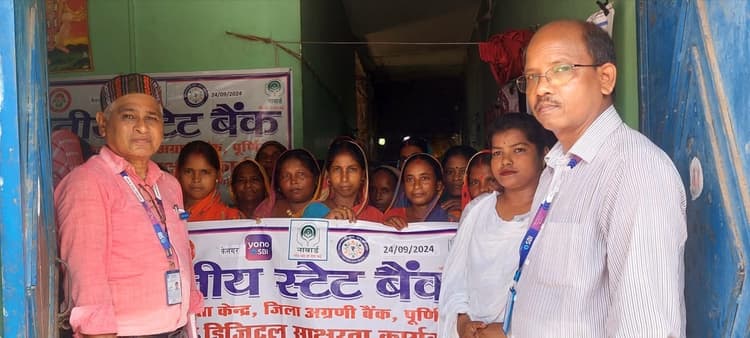 पूर्णिया. जिले के विभिन्न ग्रामीण क्षेत्रों मे जिला अग्रणी बैंक, भारतीय स्टेट बैंक के वित्तीय साक्षरता केंद्र द्वारा वित्तीय समावेशन सह स्वच्छता कार्यक्रम को ले लगातार अभियान चलाया जा रहा है. भारतीय स्टेट बैंक से सेवानिवृत्त मुख्य प्रबंधक अजय कांत झा वित्तीय समावेशन से सशक्तिकरण योजनाओं के बारे मे विस्तार पूर्वक, भारत सरकार की महत्वपूर्ण व महत्वाकांक्षी योजनाओं की जानकारियां कैम्प लगाकर आम लोगों को दे रहे है. ऐसा ही एक कार्यक्रम कृत्यानंद नगर प्रखंड स्थित बनभाग के बंगाली टोला में आयोजित किया गया. कार्यक्रम में प्रधानमंत्री जनधन खाता के सभी पहलुओं पर जानकारी दी गयी साथ ही जन जागरूकता के लिए पर्ची, हैंडबिल का भी वितरण किया गया. इस मौके पर बैंकों की ऋण योजनाओं पर विस्तारपूर्वक जानकारी बैंक के जिला अग्रणी प्रबंधक मुख्य प्रबंधक बासुदेव उरांव ने दी. वित्तीय साक्षरता सलाहकार, अजय कांत झा ने प्रधान मंत्री जन-धन खाता, जन सुरक्षा बीमा योजना, मुद्रा ऋण, प्रधान मंत्री रोजगार सृजन योजना अन्य ऋण की जानकारी विस्तारपूर्वक दी. ग्राहक सेवा केंद्र पर क्या करे और क्या नहीं करे बारे मे भी लोगों को बताया गया. उन्होंने लोगों को डिजिटल ट्रांजेक्शन के लिए भी प्रेरित किया तथा अपनी गोपनीय जानकारी किसी को शेयर ना करने का सुझाव दिया. फोटो. 24 पूर्णिया 11- जागरूकता कार्यक्रम में मौजूद बैंक कर्मी एवं ग्राहक