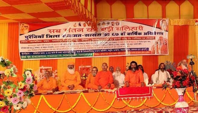 भवानीपुर. भवानीपुर प्रखंड के बसंतपुर चिंतामणि उसकावरी पंचायत के असकतिया गांव में दो दिवसीय जिला संतमत सत्संग के 67वां वार्षिक अधिवेशन से वातावरण भक्तिमय है महर्षि मेंही धाम मणियारपुर के संतमत के प्रधान आचार्य परमपूज्य स्वामी चतुरानंद जी महाराज ने कहा कि आज समाज में जितनी भी बुराइयां फैली हुई है उसके लिए मनुष्य का बाहरी आडंबर जिम्मेवार है. उन्होंने कहा कि सत्संग के बगैर मानव जीवन न सिर्फ निरर्थक है बल्कि मानव जीवन पशुवत है . सिर्फ सत्संग से जुड़कर ही मनुष्य मोक्ष की प्राप्ति कर सकता है. परन्तु मनुष्य आज अपने भीतर अंतरात्मा की आवाज के बदले बाहरी आडंबर की दुनिया में खोया हुआ है. जिस वजह से समाज में तमाम तरह की बुराइयां फैल रही है. स्वामी चतुरानंद महाराज ने कहा कि जिस प्रकार मनुष्य तन के लिए भोजन की आवश्यकता है. उसी प्रकार आध्यात्म के लिए भगवान का भजन एवं सत्संग अति आवश्यक है. भगवान भजन एवं सत्संग के बगैर ना तो अच्छे वातावरण का निर्माण किया जा सकता है और ना ही एक अच्छा समाज बन सकता है. उन्होंने कहा कि जहां भी सत्संग का आयोजन किया जाता है वहां इस कलयुग में भी ईश्वर एवं दिवंगत बड़े-बड़े संतो की आत्मा अवश्य पहुंचती है. सत्संग के बगैर मानव जीवन के मोक्ष की कल्पना भी नही किया जा सकता है.