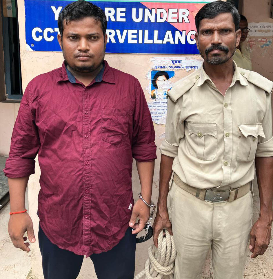 प्रतिनिधि, अमौर. अमौर थानाक्षेत्र में शनिवार को पुलिस गश्ती के दौरान 23.4 लीटर विदेशी शराब के साथ एक तस्कर को गिरफ्तार किया गया. गिरफ्तार शराब तस्कर अरविन्द कुमार मंडल साकिन जनता चौक, वार्ड 18, थाना केहाट, जिला पूर्णिया का निवासी बताया गया. थानाध्यक्ष अवधेश कुमार ने बताया कि शनिवार को अमौर थाना के सअनि विरेन्द्र कुमार सिंह ने पलसा चौक पर वाहन चेकिंग के क्रम में लाल व काला रंग की बाइक पर सवार आरोपी को रूकने का इशारा किया. हालांकि वह तेजी से बाइक लेकर भागने लगा जिसे पुलिस खदेड़ कर दबोच लिया. बाइक की तलाशी में सीट के अन्दर व डिक्की में छिपाकर रखी 23.400 लीटर विदेशी शराब बरामद हुई. थानाध्यक्ष अवधेश कुमार ने बताया कि बिहार मद्य निषेध व उत्पाद अधिनियम के तहत अमौर थाना कांड सं 302/24 के तहत मामला दर्ज कर गिरफ्तार अभियुक्त अरविन्द कुमार मंडल को न्यायिक हिरासत में जेल भेज दिया गया है. फोटोे. 10 पूर्णिया 8 परिचय- पुलिस गिरफ्त में शराब तस्कर.