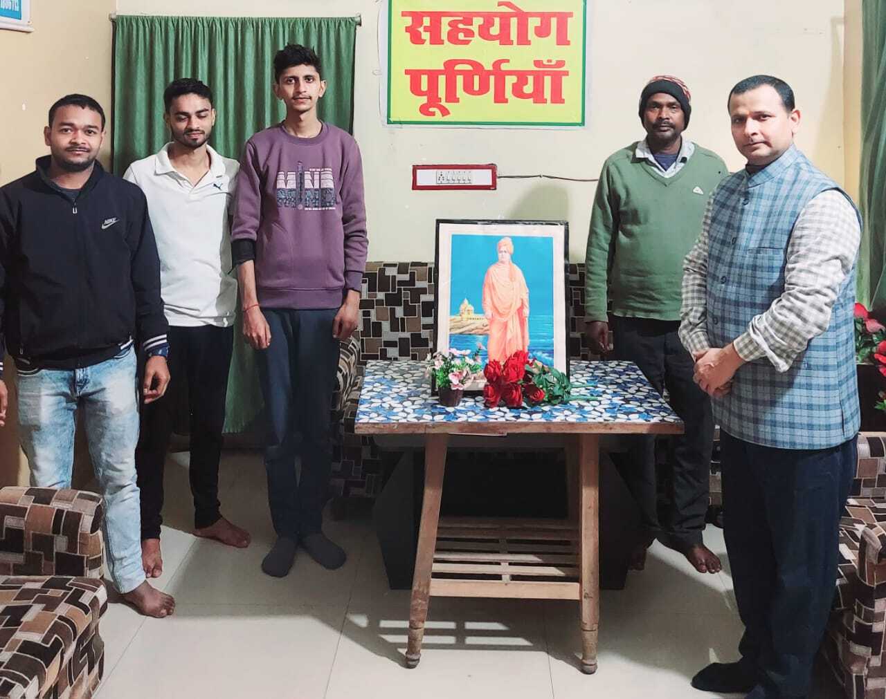 पूर्णिया. आकाशवाणी रोड स्थित सहयोग परिसर में राष्ट्रीय युवा महोत्सव मनाया गया. इस अवसर पर स्वामी विवेकानंद जी के तेल चित्र पर पुष्प अर्पित कर सहयोग डॉ अजीत प्रसाद सिंह ने नमन किया. इस अवसर पर छात्र-छात्राओं के बीच निबंध एवं भाषण प्रतियोगिता का आयोजन किया गया. इसमें सफल छात्र-छात्राओं को सम्मानित किया गया. कार्यक्रम की अध्यक्षता सहयोग के निदेशक डॉक्टर अजित कर रहे थे. इस मौके पर डॉक्टर अजित ने कहा कि स्वामी विवेकानंद की जयंती राष्ट्रीय युवा दिवस के रूप में मनायी जाती है और उनके संदेश को युवाओं तक पहुंचाकर सत्कर्म के लिए प्रेरित किया जाता है. उन्होंने कहा कि स्वामी विवेकानंद भारतीय संस्कृति, अध्यात्म और मानवता के प्रतीक थे. उनका जीवन और उनके विचार पूरी दुनिया में प्रेरणा का स्रोत बन गए. उन्होंने भारतीय दर्शन, वेदांत और योग को पश्चिमी देशों में प्रस्तुत किया और भारत को विश्व पटल पर गौरवान्वित किया. उन्होंने कहा कि विवेकानंद जी ने अमेरिका के शिकागो शहर में हुई विश्व धर्म सभा को संबोधित किया और अपने ओजस्वी भाषण से हर किसी को प्रभावित किया. स्वामी विवेकानंद ने युवाओं को आत्मनिर्भर बनने और अपने भीतर विश्वास रखने की प्रेरणा दी. इस मौके पर सहायक राजा कुमार सिंह, पार्वती कुमारी, अंकित कुमार, सक्षम कुमार, गौरव, अंश, रामविलास कुमार, सतीश, संजीवनी प्रीतम आस्था रंजीत कुमार रमन रूपेश कुमार डॉक्टर संजय कुमार, राजकुमार, डॉ केके चौधरी, डॉ राजेश गोस्वामी, मनी गिरी गोस्वामी आदि ने अपने-अपने विचार प्रस्तुत किये. फोटो–12 पूर्णिया 23-युवा उत्सव पर मौजूद अध्यक्ष डॉ. अजीत एवं अन्य