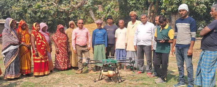 केनगर. किसानों के लिए बुधवार का दिन बेहद खास रहा. पहली बार नगर पंचायत चम्पानगर के क्षेत्र में एग्रीकल्चर ड्रोन पायलट रवीश पवार और अवनीश यादव की मदद से कोहवारा गांव एवं रामनगर गांव के कई एकड मक्का लगी फसल में एनपीके और मैग्नीशियम का छिड़काव किया गया. इस मौके पर विशेषज्ञ मिथिलेश कुमार एवं एमडीआर तपन कुमार झा ने बताया कि ड्रोन तकनीक किसानों के लिए एक वरदान की तरह है. जलवायु अनुकूल कृषि क्षेत्र में ट्रायल के रूप में अभी इसका इस्तेमाल किया जा रहा है. साथ ही लोगों को जागरूक भी किया जा रहा है. उन्होंने बताया की एग्रीकल्चर ड्रोन की मदद से खेतों में दवा और खाद का छिड़काव करने से समय और लागत दोनों की बचत होती है. लागत में 25 फीसदी तक कमी आ सकती है. यह छोटे और सीमांत किसानों के लिए भी फायदेमंद साबित होगा. इस मौके पर किसान सुदिष्ट कुमार सिंह, शंकर सिंह, कोहवारा पैक्स अध्यक्ष बीरबल कुमार मंडल, चंदन कुमार मंडल, मुन्ना विश्वास आदि शामिल थे.