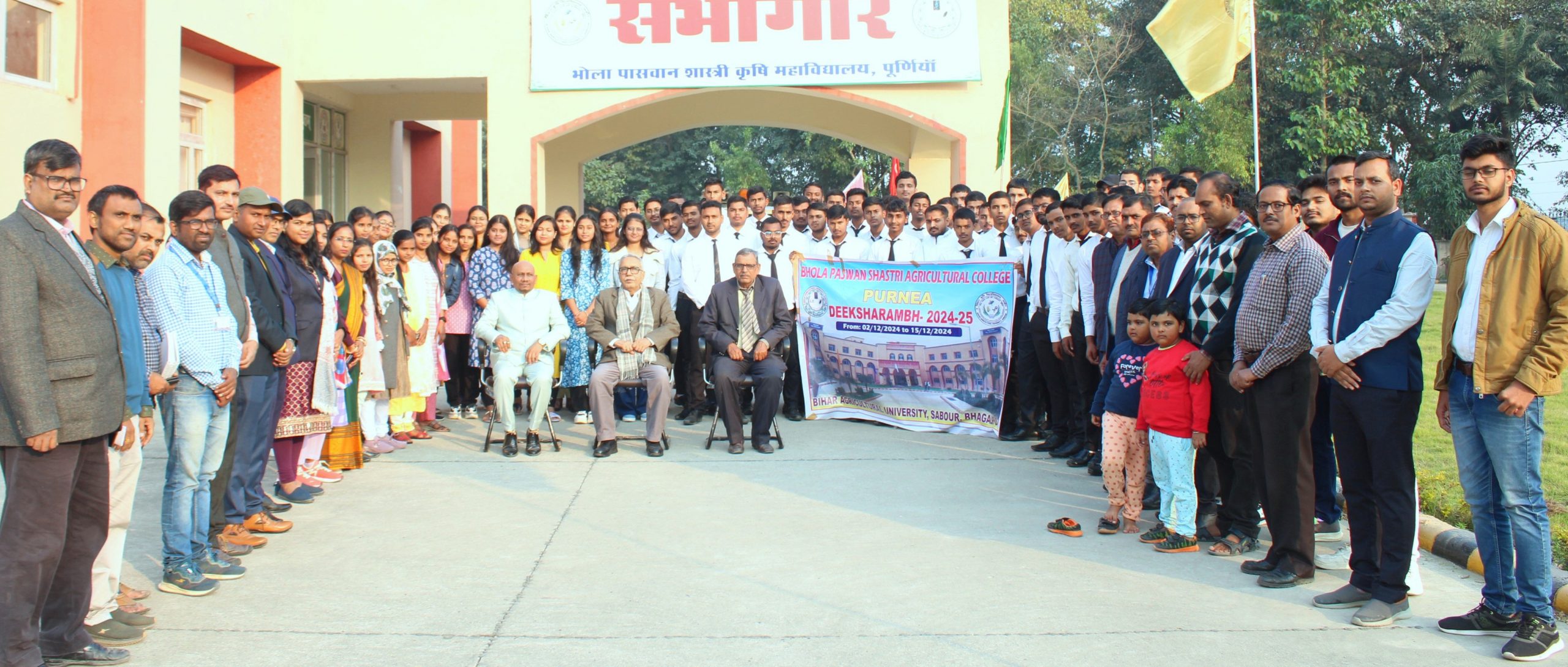 – भोला पासवान शास्त्री कृषि महाविद्यालय में दीक्षारंभ का समापन कार्यक्रम पूर्णिया. भोला पासवान शास्त्री कृषि महाविद्यालय की ओर से दीक्षारंभ के समापन कार्यक्रम में पूर्णिया विवि के कुलपति प्रो. पवन कुमार झा ने कहा कि आप सभी छात्र इस देश के भावी वैज्ञानिक हैं. शोध को विस्तृत करके समाज और देश को फायदा पहुंचाएं. प्राचार्य डॉ डी के महतो ने कहा कि यहां के छात्र-छात्रा निश्चित रूप से भविष्य में अच्छा करेंगें तथा देश को आगे बढाने में सहयोग करेंगें. इस कार्यक्रम से छात्र-छात्राओं में ज्ञान के साथ साथ व्यवहारिक ज्ञान, बौद्धिक विकास तथा योग से स्वास्थ्य के प्रति जागरूकता आयी है. कार्यक्रम के समन्वयक डॉ मणिभूषण ठाकुर ने 15 दिनों तक चले कार्यक्रमों की संक्षिप्त जानकारी दी. महाविद्यालय के कार्यक्रम पदाधिकारी डॉ आषीष रंजन ने सफल आयोजन के लिए सभी की भागीदारी की सराहना की. इससे पहले डॉ पवन कुमार झा, कुलपति, पूर्णिया विश्वविद्यालय तथा सूर्य नारायण सिंह यादव महाविद्यालय के सेवानिवृत प्राचार्य डॉ श्यामानन्द का स्वागत शाल एवं बुके देकर किया गया. इस मौके पर प्रथम वर्ष की छात्रा रोमा, लक्की,सेजल, आदिति ने स्वागत गान प्रस्तुत किया.प्रथम वर्ष के छात्र-छात्रा देवशी, सौरभ, अंशु प्रिया और आस्था सिंह ने दीक्षारंभ के अंतर्गत विभिन्न कार्यक्रमों से प्राप्त अनुभव रखा. इस दौरान मुख्यतः प्रथम सेमेस्टर के नये छात्र-छात्राओं का परिचय किया गया. फोटो. 16 पूर्णिया 19-कार्यक्रम में मौजूद कुलपति एवं कृषि कॉलेज के छात्र-छात्राएं.