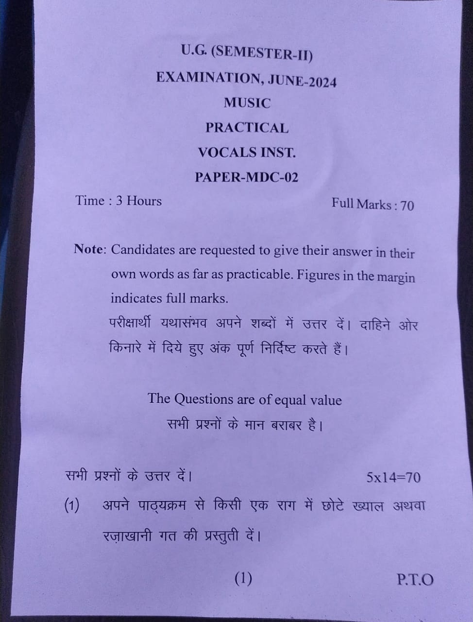 – विवि परीक्षा नियंत्रक ने कहा- प्रश्नपत्र में त्रुटि, फिर से लेंगे परीक्षा पूर्णिया. पूर्णिया विवि की ओर से यूजी सेमेस्टर टू की परीक्षा में शनिवार को उस वक्त अजीबोगरीब स्थिति पैदा हो गयी जब म्यूजिक के थ्योरी पेपर में प्रैक्टिकल का प्रश्नपत्र परीक्षार्थियों को मिल गया. सवालों को पढ़ते ही परीक्षार्थी सन्न रह गये. इसमें एक प्रश्न था कि अपने पाठ्यक्रम से किसी भी ताल का हाथ में ताली देकर ठेका दिखाएं. इसकी प्रकार से लोकगीत की प्रस्तुति देने कहा गया. थ्योरी में प्रैक्टिकल के प्रश्न देख परीक्षार्थी हक्के-बक्के रह गये. परीक्षार्थियों ने फौरन इसपर आपत्ति दर्ज करायी. इस बाबत केंद्रों से विवि परीक्षा विभाग को इस बारे में सूचना दी गयी. इस संबंध में विवि परीक्षा नियंत्रक प्रो. एके पांडेय ने बताया कि म्यूजिक के प्रश्नपत्र में तकनीकी त्रुटि है. म्यूजिक की परीक्षा पुन: आयोजित की जायेगी.गौरतलब है कि 15 अंगीभूत एवं 19 संबद्ध महाविद्यालय के छात्र-छात्राओं के लिए बीए बीएससी बीकॉम सीबीसीएस सत्र 2023-27 की द्वितीय सेमेस्टर की परीक्षा 22 जुलाई से चल रही. पूर्णिया में 9,कटिहार में 5, अररिया में 7 और किशनगंज में दो परीक्षा केंद्रों पर कड़ी निगरानी में शांतिपूर्वक परीक्षा ली जा रही है. यह परीक्षा 2 अगस्त तक निर्धारित है. फोटो. 27 पूर्णिया 35, 36- यूजी टू परीक्षा में म्यूजिक का प्रश्नपत्र