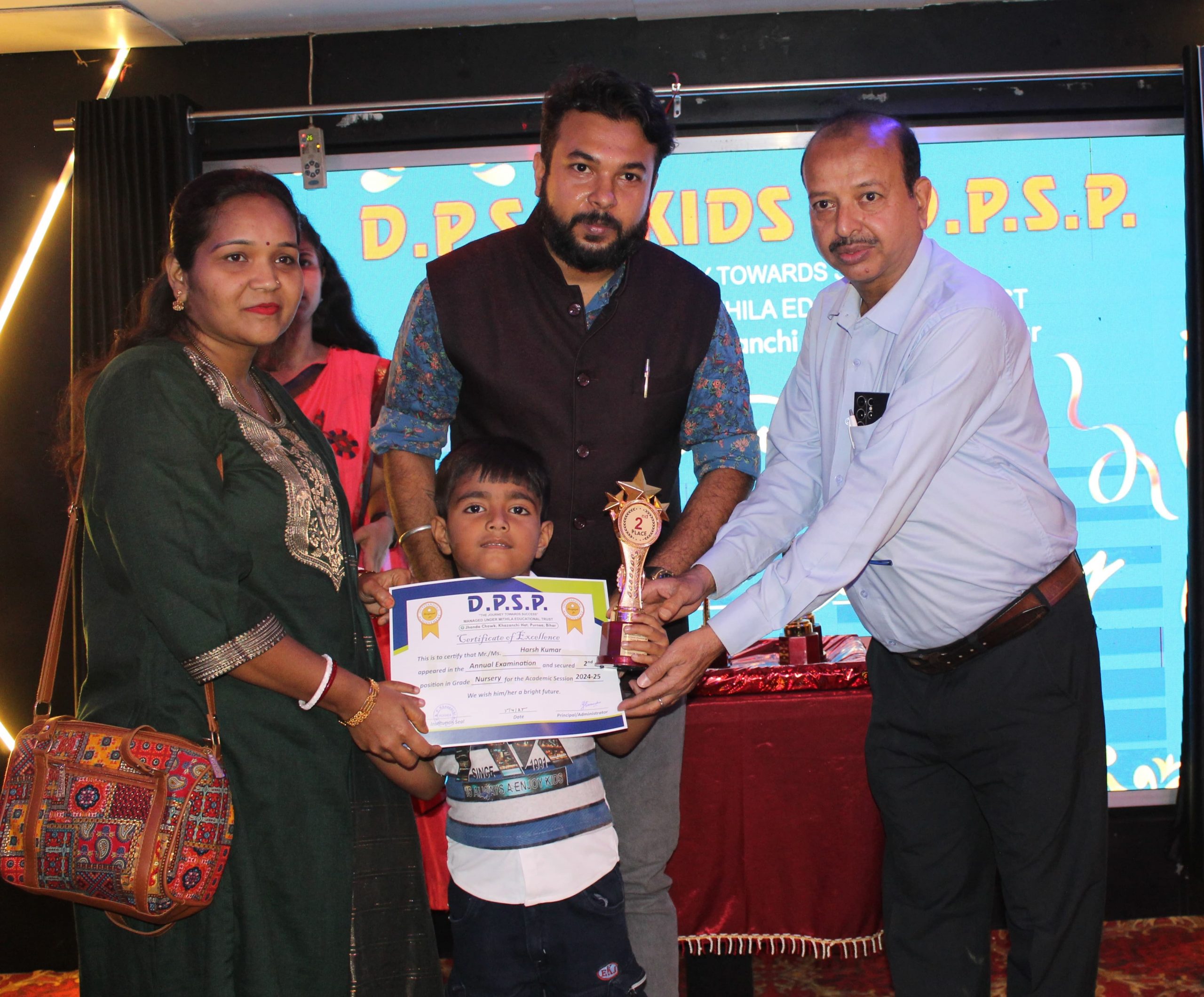 पूर्णिया. खजांची हाट झंडा चौक स्थित डीपीएसपी विद्यालय का पुरस्कार समारोह आयोजित किया गया. इस पुरस्कार समारोह में सत्र 2024-25 के वार्षिक परीक्षा के प्रथम, द्वितीय एवं तृतीय रैंक होल्डर्स को उनके माता पिता द्वारा सम्मानित कराया गया. इस अवसर पर विद्यालय के निदेशक राजेंद्र कुमार भगत एवं अन्य शिक्षकगण मौजूद रहे. इसके साथ ही बच्चे हर साल इसी प्रकार अच्छा रिजल्ट लाते रहें, इसके लिए उन्हें प्रोत्साहित भी किया गया एवं मोबाइल और सोशल मीडिया से दूर रहने की सलाह दी गयी.