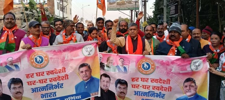 विधायक ने स्वदेशी अपनाने पर लोग से की अपील पूर्णिया. नगर मंडल पश्चिम भाग के मधुबनी में भारतीय जनता पार्टी द्वारा ‘घर-घर स्वदेशी, हर घर स्वदेशी’अभियान के तहत भव्य स्वदेशी जागरूकता पदयात्रा का आयोजन किया गया. यह पदयात्रा मधुबनी थाना चौक से प्रारंभ होकर मधुबनी बाजार तक निकाली गई. इसमें भाजपा कार्यकर्ताओं के साथ विधायक विजय खेमका भी सक्रिय रूप से शामिल हुए. पदयात्रा के दौरान प्रतिष्ठान मालिकों एवं आम नागरिकों के बीच ‘स्वदेशी अपनाओ, भारत को आत्मनिर्भर बनाओ’संदेश वाले पत्रक वितरित किया गया. इस अवसर पर कई दुकानदारों ने अपने प्रतिष्ठानों पर स्वदेशी के समर्थन में स्टीकर एवं बैनर लगाए, जिससे क्रेता और विक्रेता दोनों का उत्साहवर्धन हुआ. महावीर मंदिर के पास बड़ी संख्या में लोगों ने प्रधानमंत्री नरेंद्र मोदी के संकल्प “स्वदेशी अपनाओ, भारत को आत्मनिर्भर बनाओ” के समर्थन में संकल्प पत्र भरे और यह प्रतिज्ञा ली कि वे देश में निर्मित उत्पादों काअधिक से अधिक उपयोग करेंगे. इस अवसर पर विधायक श्री खेमका ने कहा कि प्रधानमंत्री नरेंद्र मोदी का स्पष्ट संकल्प है विकसित भारत, आत्मनिर्भर भारत, आत्मनिर्भर बिहार और आत्मनिर्भर पूर्णिया का निर्माण. इस लक्ष्य को प्राप्त करने के लिए पूर्णियावासियों को स्वदेशी अपनाने की दिशा में आगे आना होगा. उन्होंने कहा कि स्वदेशी उत्पादो के उपयोग से न केवल देश की अर्थव्यवस्था मजबूत होगी, बल्कि स्थानीय उद्योगोंऔर व्यापारियों को भी नया बल मिलेगा.यह जागरूकता अभियान 25 दिसंबर पंडित दीनदयाल उपाध्याय जी की जयंती तक लगातार चलाया जाएगा. कार्यक्रम में जिला नेता संजय मिश्रा, सुजीत सिन्हा, राजीव राय, अनुपम झा, अभिजीत तेवरी, मंडल अध्यक्ष गोपाल सिन्हा, विनोद सिन्हा, अजीत सिन्हा, ममता झा, नूतन श्रीवास्तव, नीतू झा, चंद्रकिशोर भगत, किशोर साह, सुनीति सिन्हा, अवधेश सिंह, मनोज श्रीवास्तव, प्रदीप वर्मा, सहित बड़ी संख्या में भाजपा कार्यकर्ताओं ने उत्साहपूर्वक भाग लिया.