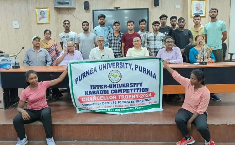 पूर्णिया. चांसलर ट्रॉफी कबड्डी के लिए पूर्णिया विवि ने सोमवार को टीम को पटना के लिए रवाना किया. इस मौके पर कुलपति प्रो. पवन कुमार झा ने खिलाड़ियों का उत्साहवर्द्धन किया. इस मौके पर विवि खेल पदाधिकारी सह डीन मानविकी प्रो. एस के सुमन, डीएसडब्लू प्रो. मरगूब आलम, कुलसचिव प्रो. अनंत प्रसाद गुप्ता आदि ने भी खिलाड़ियों से विशेष अपेक्षा जतायी. गौरतलब है कि चांसलर ट्रॉफी कबड्डी के लिए पूर्णिया विवि ने बीते 3 अक्टूबर को चयन प्रतियोगिता करायी थी. पूर्णिया कॉलेज के प्रधानाचार्य प्रो. शंभुलाल वर्मा के मार्गदर्शन में इस कबड्डी चयन प्रतियोगिता में लगभग 100 प्रतिभागियों ने भाग लिया. प्रदर्शन के आधार पर चयनित टीम 15 अक्टूबर से 20 अक्टूबर तक पटना में चांसलर ट्रॉफी कबड्डी में भाग लेगी. इस टीम में छात्र वर्ग में दीपक कुमार, आशीष कुमार सोरेन, कार्तिक हेंब्रम, राहुल कुमार महतो, ओमजी, सोनू कुमार, विशाल कुमार राय, मो. तौसिफ रजा, मो. महताब आलम, राणा कुमार, आकाश पन्ना और सौरभ शौर्य शामिल हैं. वहीं छात्रा वर्ग में सुमन कुमारी, अनामिका उरांव, मनीषा उरांव, नंदिनी कुमारी, छोटी कुमारी, रिया कुमारी, लक्की कुमारी, सृष्टि कुमारी, आरती कुमारी, पूजा कुमारी, टिशा दास और रुचि रानी शामिल हैं.