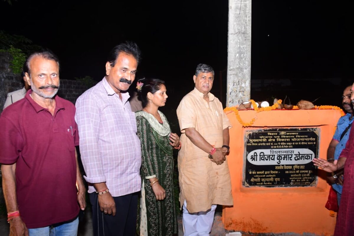 पूर्णिया. विधायक विजय खेमका ने कहा है कि एनडीए सरकार के नेतृत्व में पूर्णिया का सर्वांगीण विकास उनकी प्राथमिकता है. बिजली, सड़क, स्वास्थ्य, शिक्षा और सामाजिक योजनाओं के जरिए आज आमजन का जीवन स्तर बेहतर हो रहा है. उन्होंने कहा कि प्रधानमंत्री नरेंद्र मोदी के नेतृत्व में भारत तेज़ी से आगे बढ़ रहा है और पूर्णिया इस विकास यात्रा का अहम हिस्सा बना है. पूर्णिया के आम हवाम से उन्होंने 15 सितंबर को आयोजित प्रधानमंत्री नरेंद्र मोदी जी की विशाल जनसभा में अधिकतम भागीदारी की अपील की. विधायक श्री खेमका रविवार को शहर के वार्ड 4 में दो सड़कों रोहित ठाकुर के घर से धीरेंद्र यादव के घर तक तथा प्रमोद जी के घर से अंकित शर्मा के घर तक और वार्ड 5 सरस्वती नगर में मधुरेन्द्र झा के घर से सीताराम मुर्मू के घर तक विधायक निधि से तीन सड़कों के निर्माण कार्य का शिलान्यास के मौके पर बोल रहे थे. इस अवसर पर स्थानीय नागरिकों एवं पार्टी कार्यकर्ताओं ने गर्मजोशी से उनका स्वागत किया. विधायक ने बताया कि तीनों सड़कें सिपाही टोला सरस्वती नगर एवं डीएभी कौशिक नगर में बन रही हैं, जिनके तैयार हो जाने से वार्डवासियों को आवागमन की सुविधा मिलेगी.