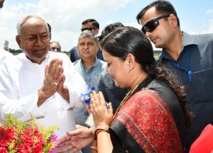 पूर्णिया.महापौर विभा कुमारी ने शनिवार को चूनापुर स्थित सैन्य हवाई अड्डा पर मुख्यमंत्री नीतीश कुमार का स्वागत किया. महापौर ने मुख्यमंत्री श्री कुमार को बुके देकर उनका अभिवादन किया. महापौर विभा कुमारी ने कहा है कि पूर्णिया से विमान सेवा आरम्भ हो, यह पूर्णिया वासियों की बहुत ही पुरानी मांग है. प्रधानमंत्री ने भी पूर्णिया में इस आशय की घोषणा सार्वजनिक मंच से किया था. ऐसे में इस दिशा में हो रहे विलंब से आमजनों में निराशा है. महापौर ने कहा कि नीतीश कुमार जी अपने विकास कार्यों के लिए जाने जाते हैं. ऐसे में आशा है कि हवाई सेवा के रास्ते मे जो भी रुकावट होगी, वह इस समीक्षा बैठक के बाद दूर हो जाएगी.फोटो. 24 पूर्णिया 11- सीएम का अभिवादन करतीं महापौर.