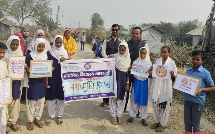 पूर्णिया. नशे से दूरी स्वस्थ जीवन के लिए जरूरी, नशा मुक्ति के इन्हीं नारों के साथ कसबा प्रखंड के सबदलपुर पंचायत के प्राथमिक विद्यालय तालझाड़ी के बच्चों ने विद्यालय के शिक्षकों के साथ रैली निकालकर लोगों को नशा मुक्ति का संदेश दिया. विद्यालय के प्रधान शिक्षक सुमित भारती ने जानकारी दी कि विभागीय निर्देश के आलोक में बुधवार को नशा मुक्ति अभियान के तहत विद्यालय के सभी छात्र छात्राओं और शिक्षकों के द्वारा आम जनों के बीच नशे से होने वाले दुष्प्रभावों के प्रति जागरूक करने के उद्देश्य से प्रभात फेरी निकाली गई. स्कूल के बच्चों और शिक्षकों ने शपथ ली कि वे जीवन में कभी भी किसी भी प्रकार के नशीले पदार्थ का सेवन नहीं करेंगे और दूसरों को भी नशे से दूर रहने के लिए प्रेरित करेंगे.साथ ही संविधान दिवस के अवसर पर संविधान की प्रस्तावना का वाचन किया गया और संविधान की रक्षा का संकल्प दोहराया गया. 26 नवंबर 1949 को भारत का संविधान बनकर तैयार हुआ था. इसलिए इस दिन हर वर्ष संवैधानिक मूल्यों की रक्षा का संकल्प लेते हुए हम संविधान दिवस मनाते हैं. इस अवसर पर शिक्षक मो वसीम अख्तर,मो जफर आलम,मो सरफराज आलम, रूखसाना परवीन,शमा परवीन,शहर बानो,नगमा परवीन,मुसर्रत यासमीन आदि मौजूद थे.