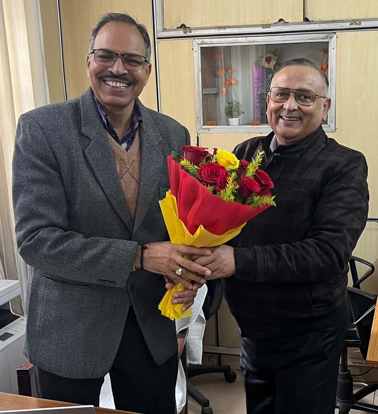 – नये कुलपति से पटना में कुलसचिव ने की मुलाकात पूर्णिया. खरमास के बाद पूर्णिया विवि के नये कुलपति प्रो विवेकानंद सिंह योगदान देंगे. इस बीच, पूर्णिया विवि के कुलसचिव प्रो अनंत प्रसाद गुप्ता ने नये कुलपति से मुलाकात की. इस दौरान नये कुलपति प्रो विवेकानंद सिंह ने पूर्णिया विवि के स्वरूप और प्राथमिकताओं पर चर्चा की. इस मुलाकात पर कुलसचिव प्रो अनंत प्रसाद गुप्ता ने बताया कि नये कुलपति का दृष्टिकोण काफी व्यापक है. वे अकादमिक गतिविधियों और शोध कार्यों में भी काफी सक्रिय हैं. पूर्णिया विवि के छात्र-छात्राओं के लिए यह काफी शुभ संकेत है. विवि का शैक्षणिक वातावरण और भी सुदृढ होगा. फोटो. 11 पूर्णिया 7 परिचय- नये कुलपति को गुलदस्ता देते कुलसचिव प्रो अनंत प्रसाद गुप्ता.
