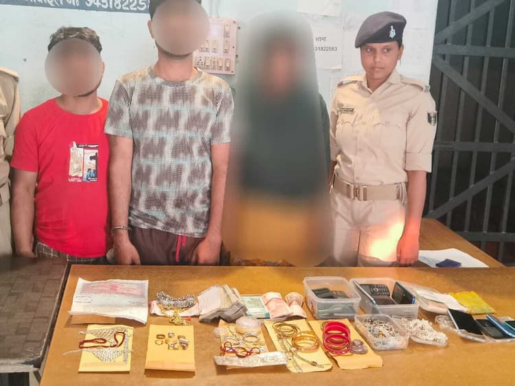 पूर्णिया.सदर थाना की पुलिस ने गुप्त सूचना के आधार पर चोरी के जेवरात,नगद रूपये एवं अन्य सामान के साथ दो चोर को गिरफ्तार कर लिया.गिरफ्तार दोनों चोर सदर थाना क्षेत्र के हैं.इनमें महाराजगंज वार्ड 30 के नवीन कुमार एवं सरदार टोला वार्ड 38 का प्रेम कुमार शामिल है.शुक्रवार को सदर थानाध्यक्ष अजय कुमार को सूचना मिली कि नवीन कुमार, जिसने कई चोरी एवं गृहभेदन की घटना को अपने साथियों के साथ मिलकर अंजाम दिया है, वह अभी हसदा रोड में घरों की रेकी कर रहा है. सूचना के सत्यापन एवं आवश्यक कार्रवाई के लिए एक छापामारी दल का गठन किया गया. गठित दल जब हासदा रोड आम बगीचा के पास पहुंची,तो पुलिस वाहन को देखकर एक व्यक्ति भागने का प्रयास किया, जिसे सशस्त्र बल के सहयोग से पकड़ लिया गया. पकड़ाये व्यक्ति का नाम पूछने पर उसने अपना नाम नवीन कुमार बताया.पूछताछ करने पर व्यक्ति द्वारा बंद घरों की रेकी कर चोरी करने की बात को स्वीकार किया गया.नवीन कुमार की निशानदेही पर जब उसके दून पब्लिक स्कूल के पास स्थित घर एवं उसके सहयोगी के सरदार टोला गुलाबबाग स्थित घर की तलाशी ली गई, तो तलाशी के क्रम में वाहन से चोरी के सोने एवं चांदी के जेवर, सिक्के, नकद रूपये, मोबाईल एवं बाइक बरामद किया गया. बरामद सभी सामानों को जप्त करते हुए अभियुक्त नवीन कुमार एवं उसके सहयोगी प्रेम कुमार को गिरफ्तार किया गया. गिरफ्तार अभियुक्तों के विरूद्ध अग्रतर कार्रवाई की जा रही है. अन्य अभियुक्त की गिरफ्तारी के लिए छापामारी जारी है.