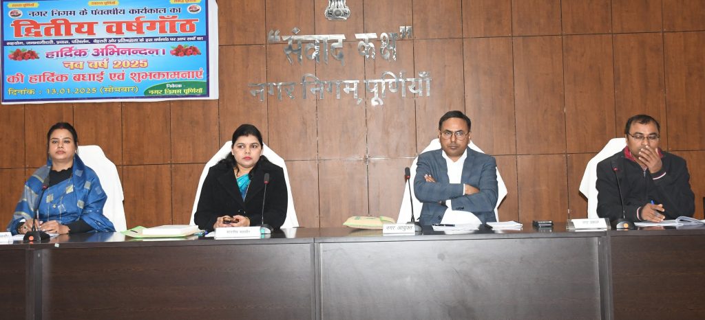 पूर्णिया. नगर निगम बोर्ड की बैठक सोमवार को नगर निगम सभागार में महापौर विभा कुमारी की अध्यक्षता में हुई. बैठक के दौरान पूरे नगर निगम क्षेत्र को पूर्वी, मध्य व पश्चिमी तीन भागों में बांटने का निर्णय सर्वसम्मति से लिया गया. इन तीनों भागों के लिए अलग-अलग प्रभारी भी नियुक्त किए जाएंगे जो अपने-अपने चिह्नित क्षेत्रों में साफ-सफाई, ब्लीचिंग पाउडर, फॉगिंग, पेयजल सहित सभी जन सुविधाओं का ध्यान रखेंगे.बैठक के दौरान वार्ड पार्षदों ने दोनों सफाई एजेंसी साइन स्टैंडर्ड व जन कल्याण पर सफाई में अनदेखी का आरोप लगाया. पार्षदों ने कहा कि दोनों एजेंसी द्वारा साफ-सफाई में काफी लापरवाही बरती जा रही है. पार्षदों की मांग व एनजीओ की अनदेखी को देखते हुए दोनों एजेंसी को हटाने का निर्णय सर्वसम्मति से लिया गया है. तत्काल वैकल्पिक रूप से पुरानी एजेंसी शिवम एनजीओ को टैग करते हुए साफ-सफाई का जिम्मा सौंपा गया है. अगले माह तक पुनः निविदा निकालकर आगामी वित्तीय वर्ष के लिए दूसरी एजेंसी को कार्य दिया जायेगा.ठोस अपशिष्ट प्रबंधन के कार्यान्वयन का निर्णय