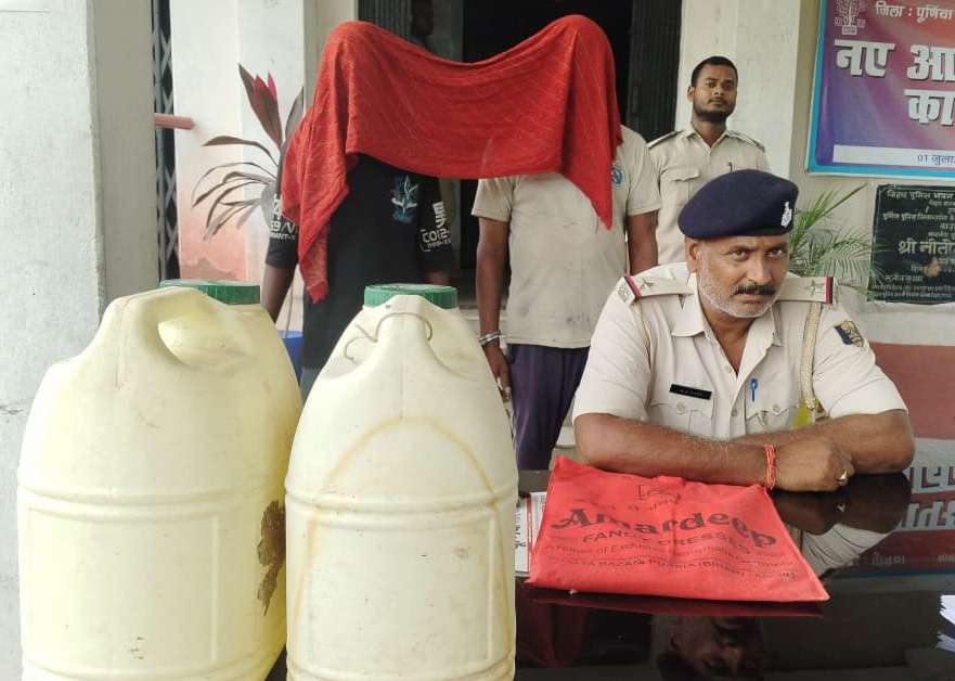 केनगर. केनगर थाना पुलिस ने बेलारिकावगंज पंचायत के रमणा लोहा गांव एवं झील टोला में छापेमारी कर दो देसी शराब तस्कर को देसी चुलाई शराब के साथ गिरफ्तार कर लिया. थानाध्यक्ष मुन्ना कुमार पटेल ने बताया कि गिरफ्तार शराब तस्कर बेलारिकावगंज पंचायत के रमणा लोहा गांव निवासी 19 वर्षीय डोमा बासुकी एवं झील टोला निवासी 40 वर्षीय रमेश उरांव है. उन्होंने बताया कि तल्लू बासुकी से 15 लीटर एवं रमेश उरांव से भी 15 लीटर समेत कुल 30 लीटर देसी चुलाई शराब बरामद की गयी जिसे आवश्यक कार्रवाई करने के बाद शुक्रवार को जेल भेज दिया गया.